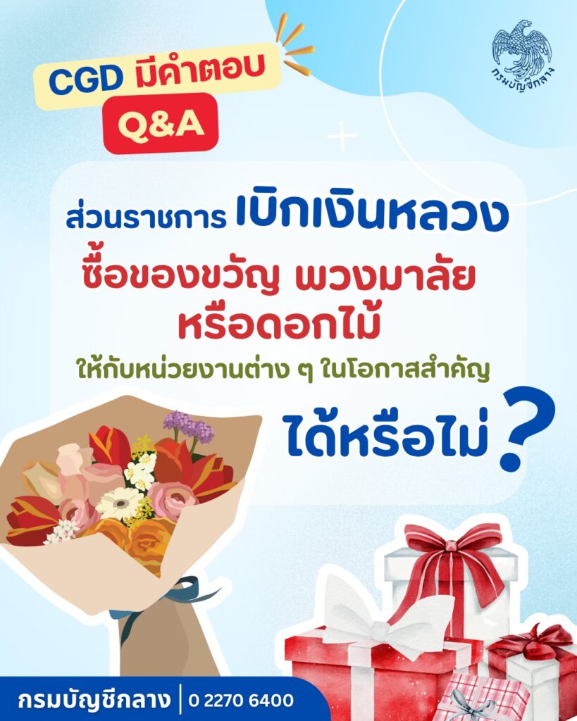 กรมบัญชีกลาง ตอบข้อสงสัยกรณีส่วนราชการจะเบิกจ่ายค่ากระเช้าดอกไม้จากเงินงบประมาณได้หรือไม่