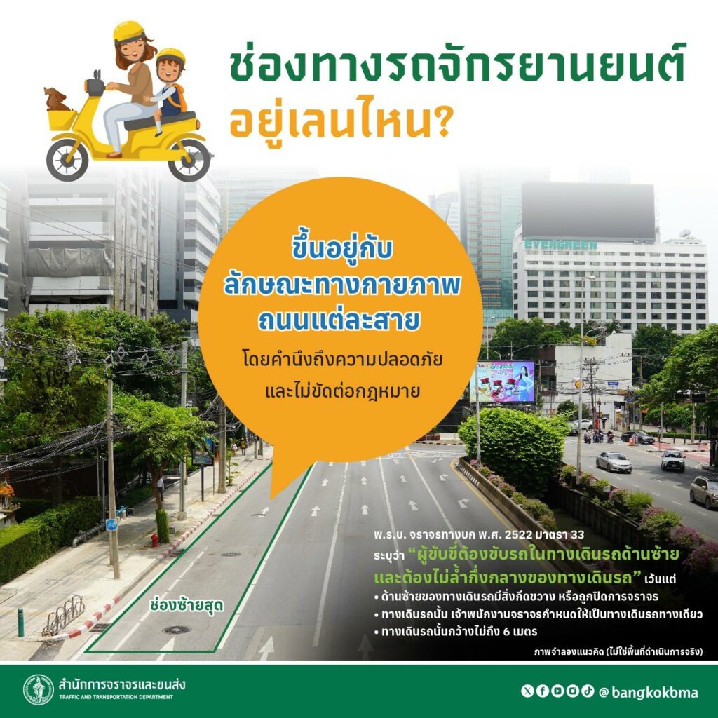 สำนักการจราจรและขนส่ง แนะนำความรู้ MC LANE ช่องทางเพื่อรถจักรยานยนต์ อีกหนึ่งความปลอดภัยและความเป็นระเบียบบนท้องถนน