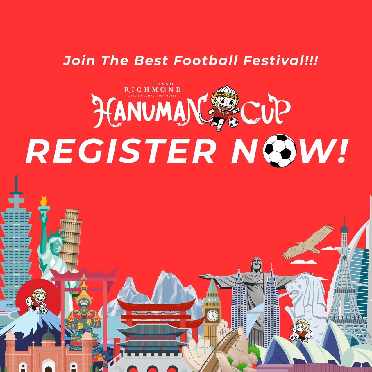 กระทรวงวัฒนธรรมร่วมสนับสนุนจัดกิจกรรมการเเข่งขันฟุตบอลเยาวชนนานาชาติ HANUMAN CUP 2025 ซึ่งจัดโดยบริษัท Richmond Hospitality Group โดยมีเป้าหมายสำคัญเพื่อส่งเสริมมิตรภาพเเละความเข้าใจระหว่างเยาวชนทั่วโลกผ่านกีฬาฟุตบอล พร้อมนำเสนอ “อัตลักษณ์ไทย” ผ่านมุมมองใหม่ที่ร่วมสมัย ภายใต้แนวคิด “A Festival of Play, A Hanuman Way!” สะท้อนพลังสร้างสรรค์ จิตวิญญาณไทย และความสนุกสนาน