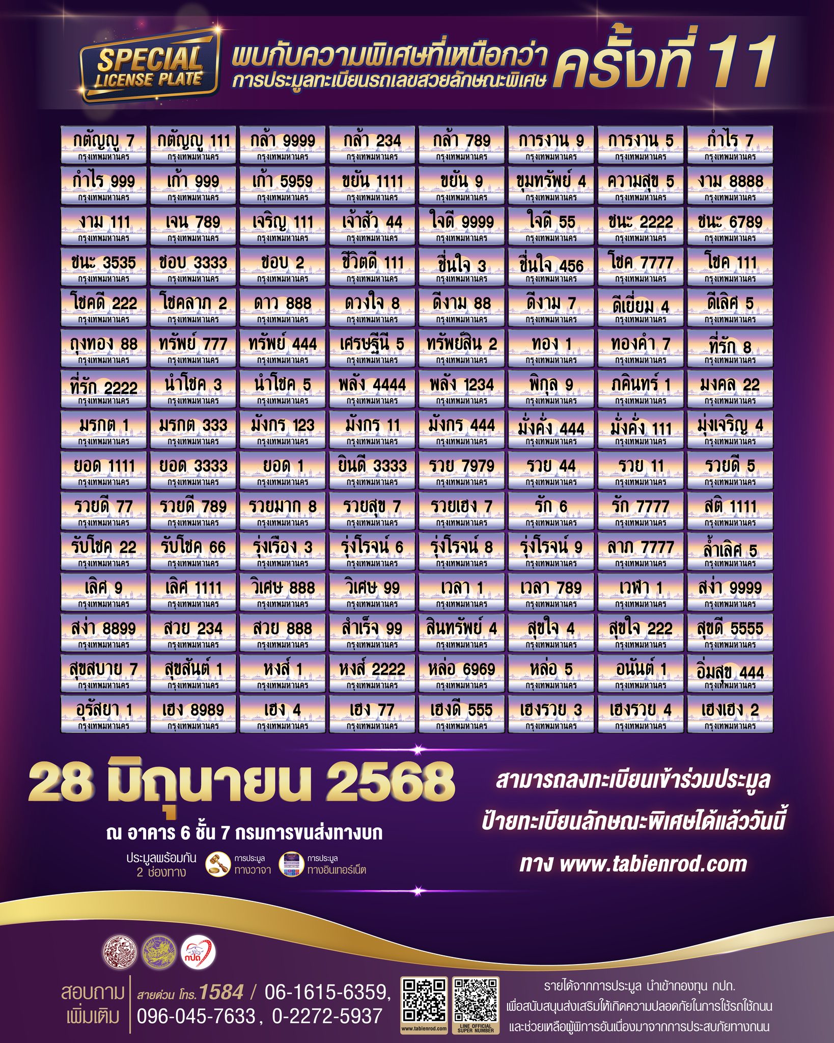 กรมการขนส่งทางบก เปิดประมูลทะเบียนรถเลขสวยลักษณะพิเศษ ครั้งที่ 11