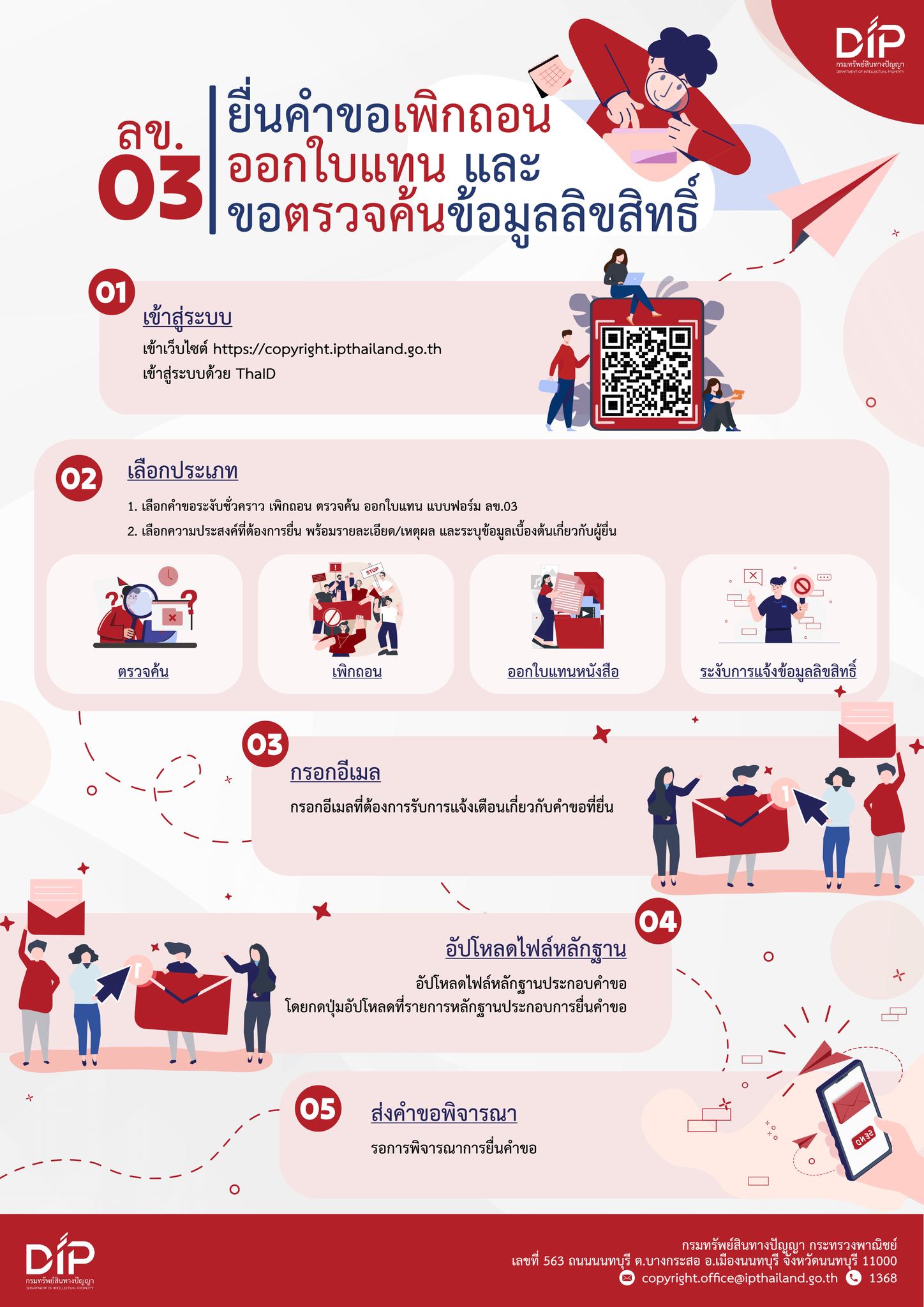 • ลข.03 ยื่นคำขอเพิกถอนออกใบเเทน เเละขอตรวจค้นข้อมูลลิขสิทธิ์