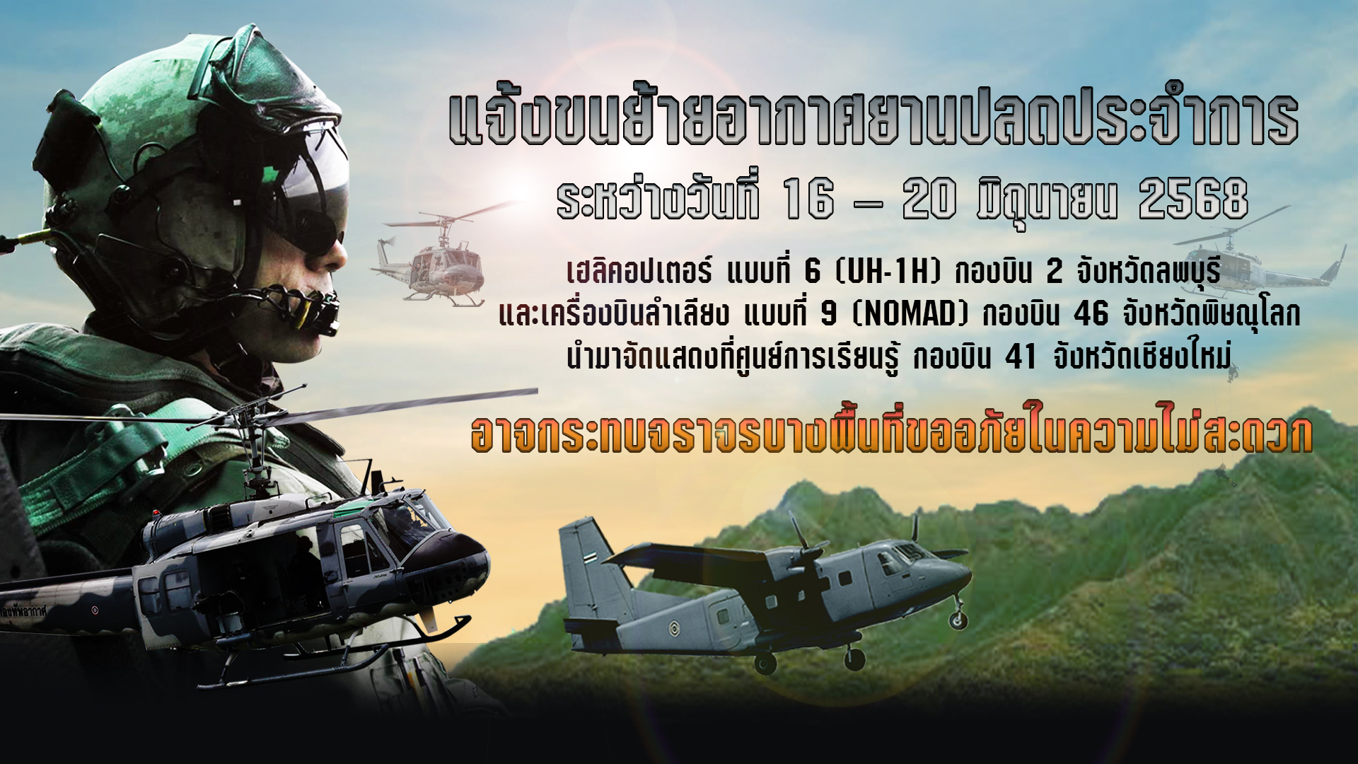 กองทัพอากาศ แจ้งขนย้ายอากาศยานปลดประจำการ วันที่ 16 – 20 มิถุนายน 2568