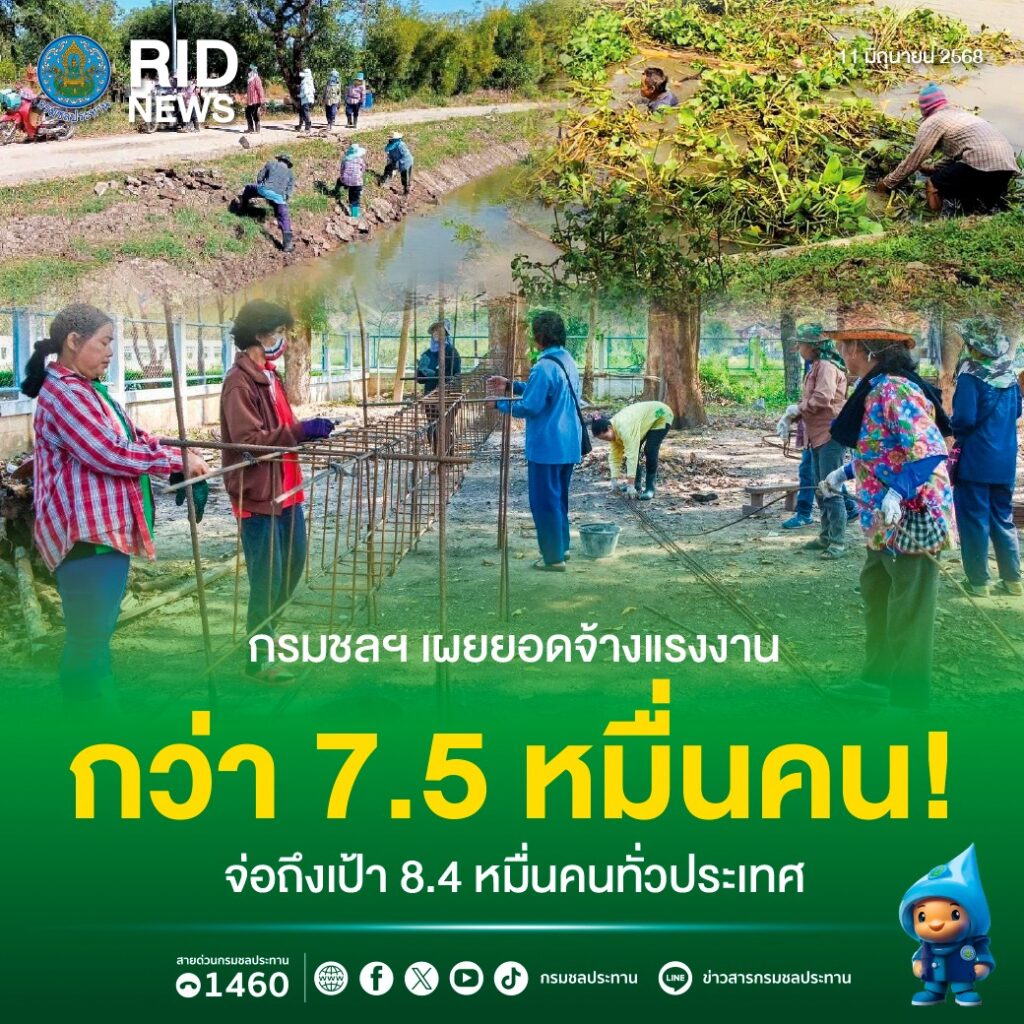 ทั้งนี้ กรมชลประทานยังคงเดินหน้าเปิดรับสมัครแรงงานอย่างต่อเนื่อง เพื่อให้การดำเนินโครงการบรรลุตามเป้าหมายที่วางไว้ จึงขอเชิญเกษตรกรและพี่น้องประชาชนที่สนใจ เข้ามาเป็นส่วนหนึ่งของโครงการจ้างแรงงานกรมชลประทาน โดยสามารถติดต่อสอบถามรายละเอียด หรือ สมัครเข้าร่วมได้ที่ โครงการชลประทานใกล้บ้าน หรือผ่าน สายด่วน 1460 กรมชลประทานบริการประชาชน