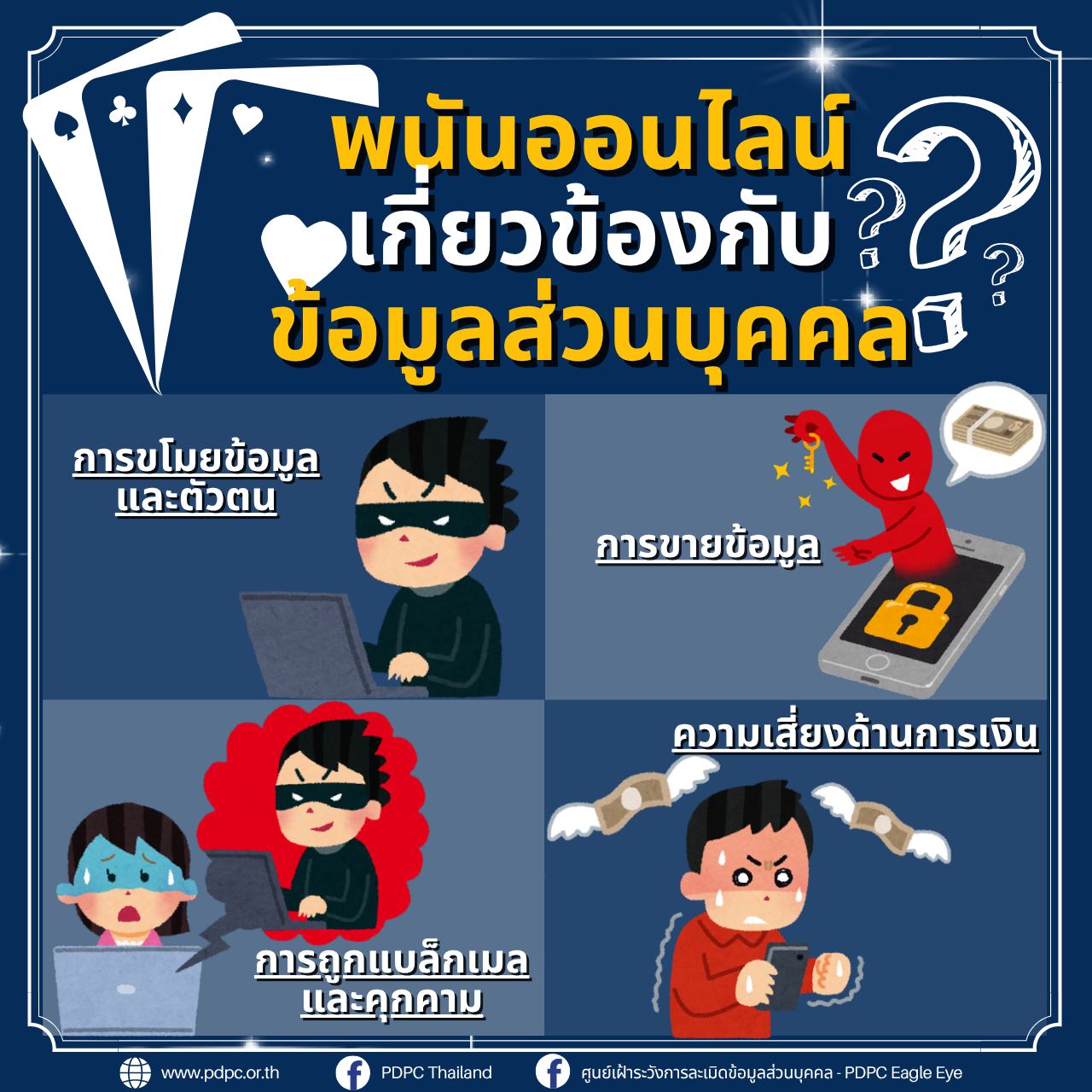 - ศูนย์เฝ้าระวังการละเมิดข้อมูลส่วนบุคคล – PDPC Eagle Eye ไม่สนับสนุนการเล่นพนันออนไลน์.
