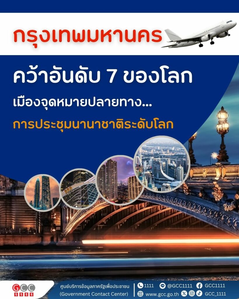 รัฐบาล เปิดเผย “กรุงเทพฯ” คว้าอันดับ 7 ของโลก เมืองจุดหมายปลายทางการประชุมนานาชาติระดับโลก