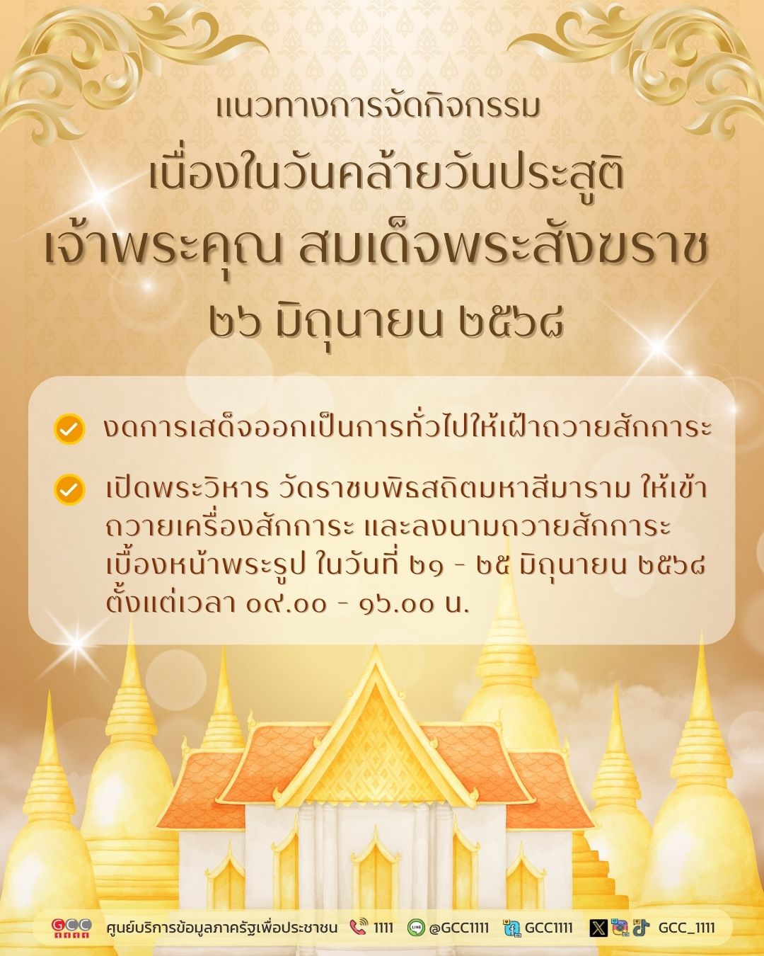 เรื่อง การจัดกิจกรรมเนื่องในโอกาสวันคล้ายวันประสูติ เจ้าพระคุณ สมเด็จพระสังฆราช 26 มิถุนายน 2568