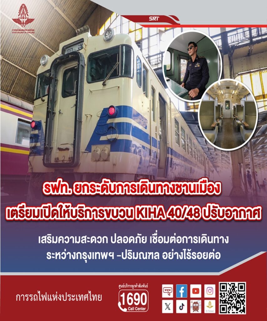 การรถไฟแห่งประเทศไทย เตรียมเปิดให้บริการขบวนรถไฟญี่ปุ่น KIHA 40/48 ปรับอากาศ