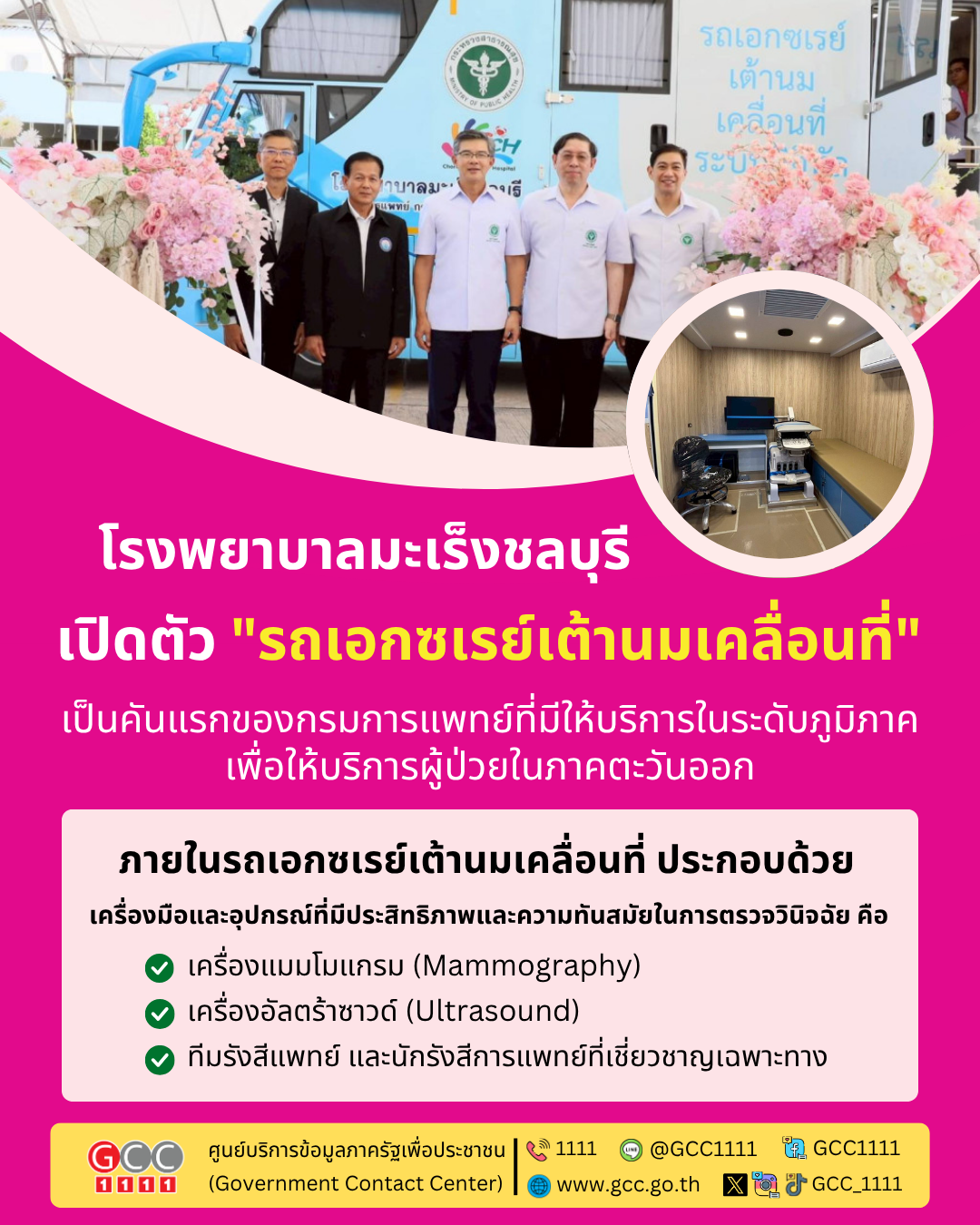 โรงพยาบาลมะเร็งชลบุรี เปิดตัว “รถเอกซเรย์เต้านมเคลื่อนที่” คันแรกของกรมการแพทย์ระดับภูมิภาค