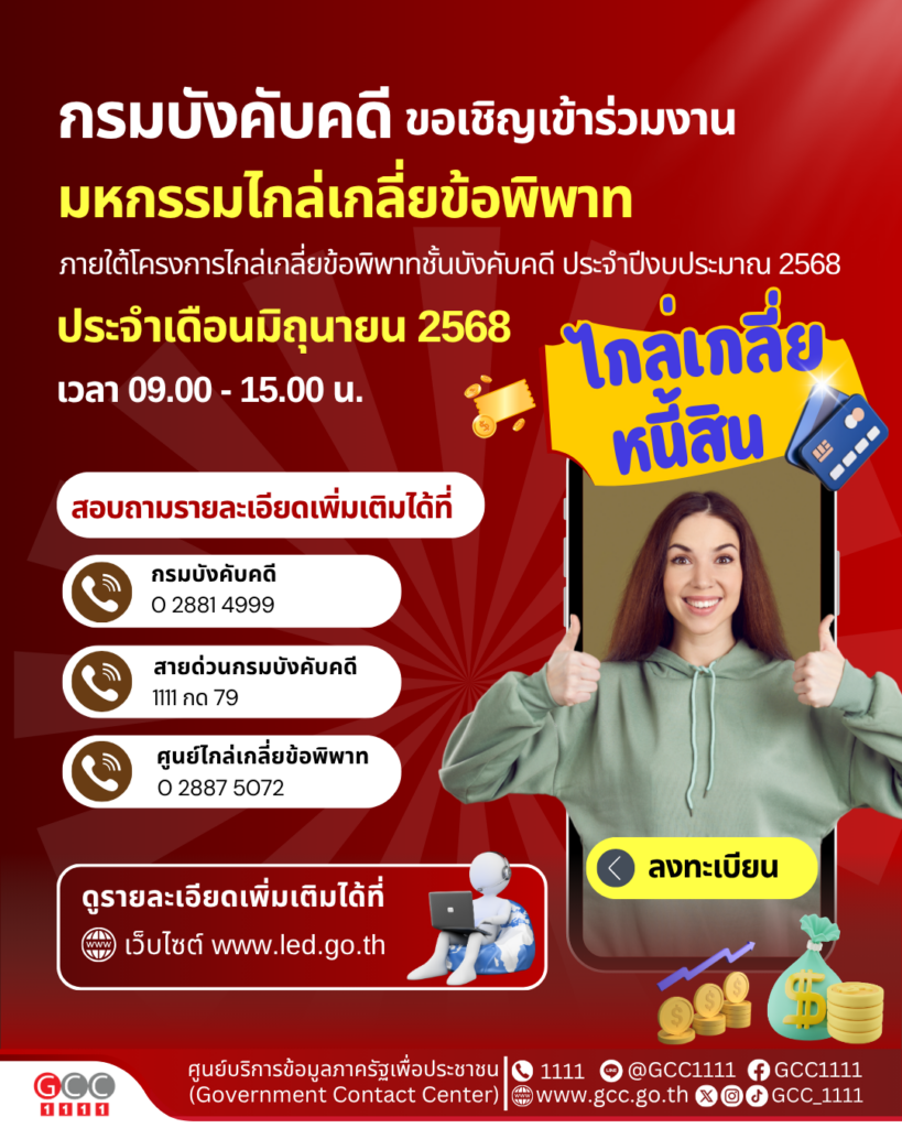 - สายด่วนกรมบังคับคดี โทร. 1111 กด 79