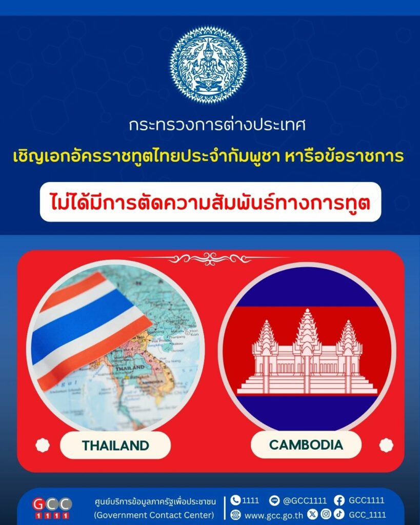 กระทรวงการต่างประเทศ ชี้แจงต่อกรณีที่มีกระแสข่าวเรียกเอกอัครราชทูตไทยประจำกัมพูชากลับประเทศไทย