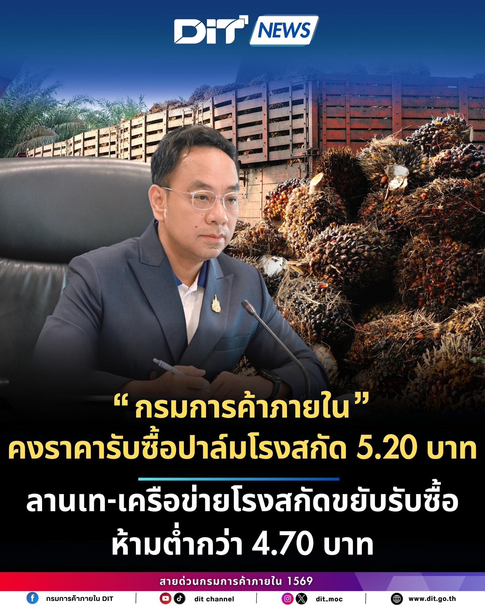 กรมการค้าภายใน คงราคารับซื้อปาล์มโรงสกัด 5.20 บาท ,ลานเท-เครือข่ายโรงสกัดขยับรับซื้อห้ามต่ำกว่า 4.70 บาท