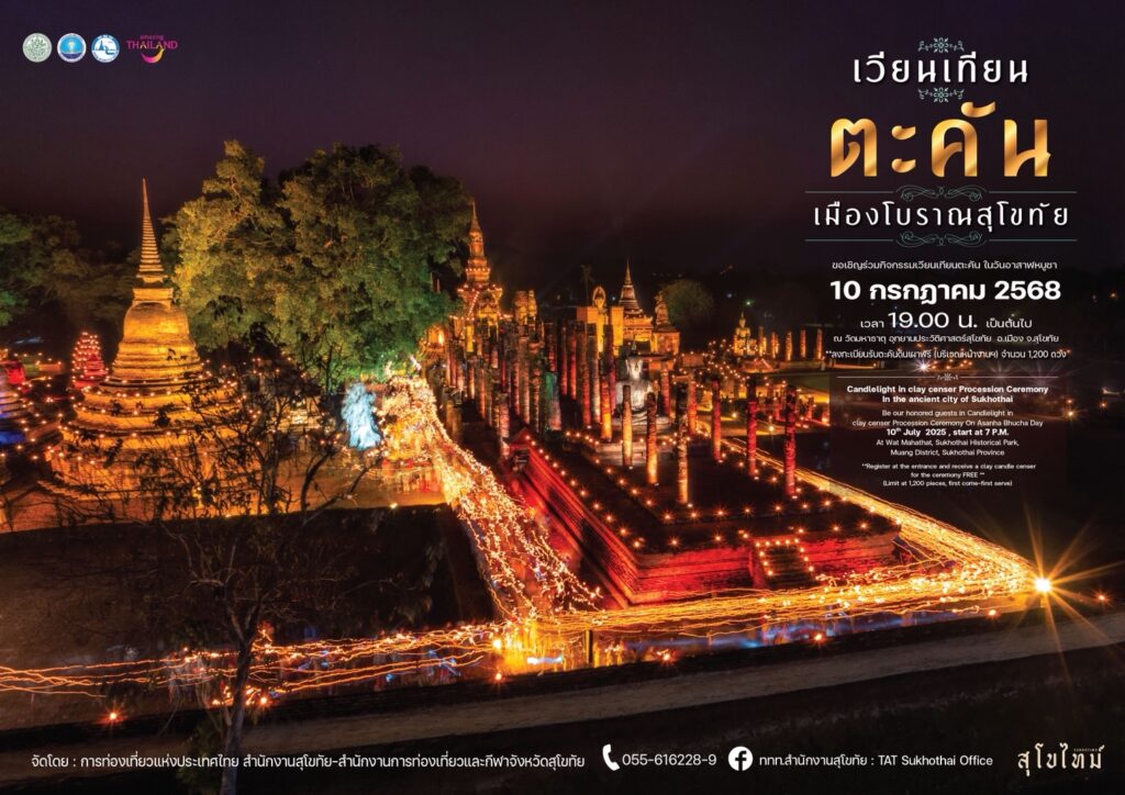 ททท.สำนักงานสุโขทัย ขอเชิญร่วมเวียนเทียนตะคันเมืองโบราณสุโขทัย เนื่องในวันอาสาฬหบูชา
