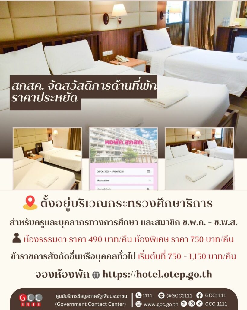 และใครที่กำลังมองหาที่พักสะดวก สะอาด ปลอดภัย ใจกลางเมือง ลองเปิดใจมาใช้บริการ “หอพัก สกสค.” แล้วจะรู้ว่าสวัสดิการดี ๆ ยังมีอยู่จริง จองห้องพัก คลิก : https://hotel.otep.go.th/