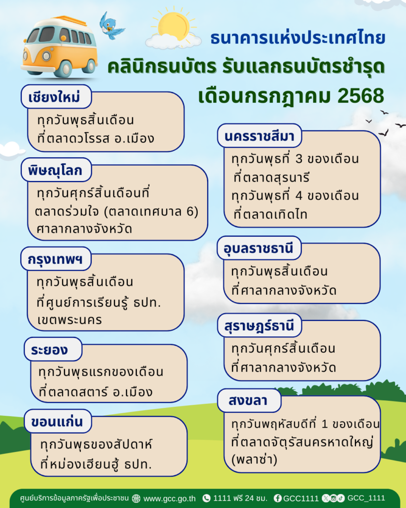ธนาคารแห่งประเทศไทย จัดกิจกรรมคลินิกธนบัตร รับแลกธนบัตรชำรุด เดือนกรกฎาคม 2568