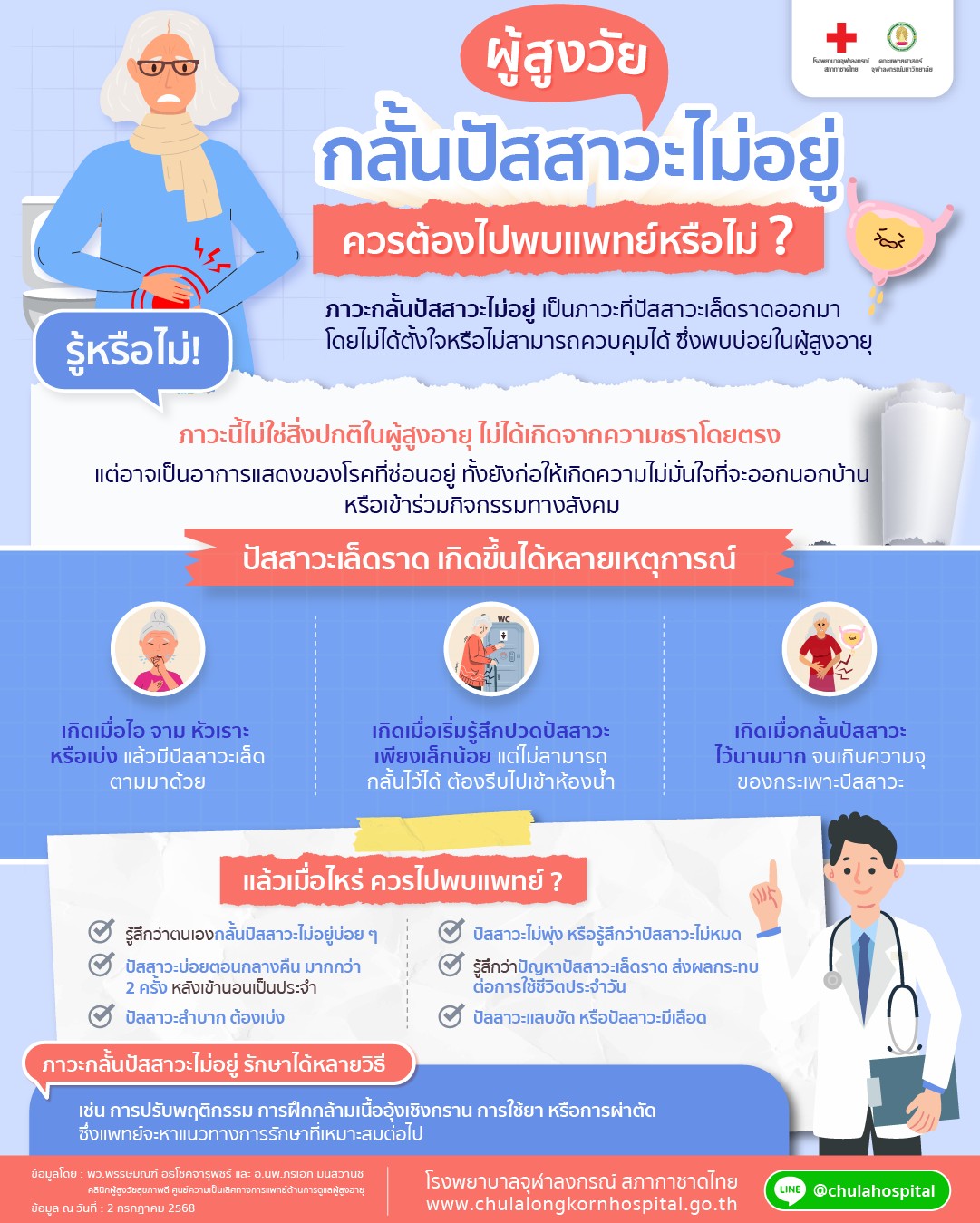 โรงพยาบาลจุฬาลงกรณ์ สภากาชาดไทย แจ้งเตือนผู้สูงวัยกลั้นปัสสาวะไม่อยู่ ควรต้องไปพบแพทย์หรือไม่