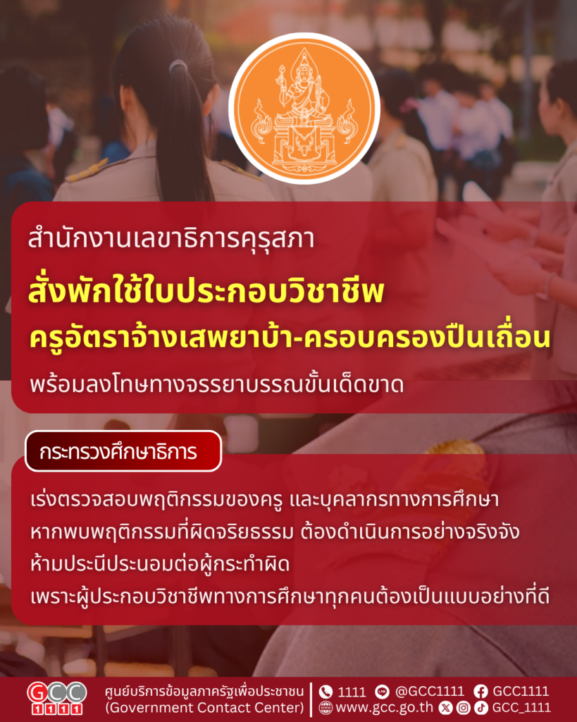 รัฐบาล เข้มจรรยาบรรณครู สั่งสำนักงานเลขาธิการคุรุสภา สั่งพักใช้ใบประกอบวิชาชีพ ครูอัตราจ้างเสพยาบ้า-ครอบครองปืนเถื่อน พร้อมลงโทษทางจรรยาบรรณขั้นเด็ดขาด