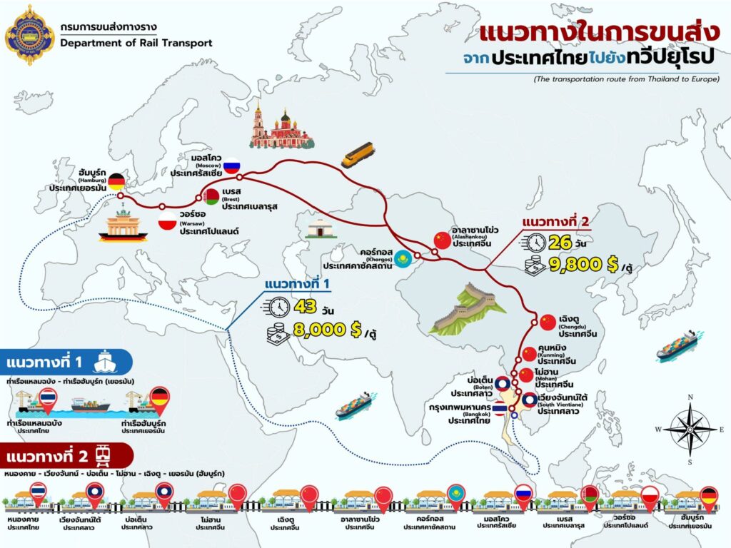กรมการขนส่งทางราง เปิดเผย 2 เส้นทางขนส่งสินค้า จากประเทศไทยไปยังทวีปยุโรป