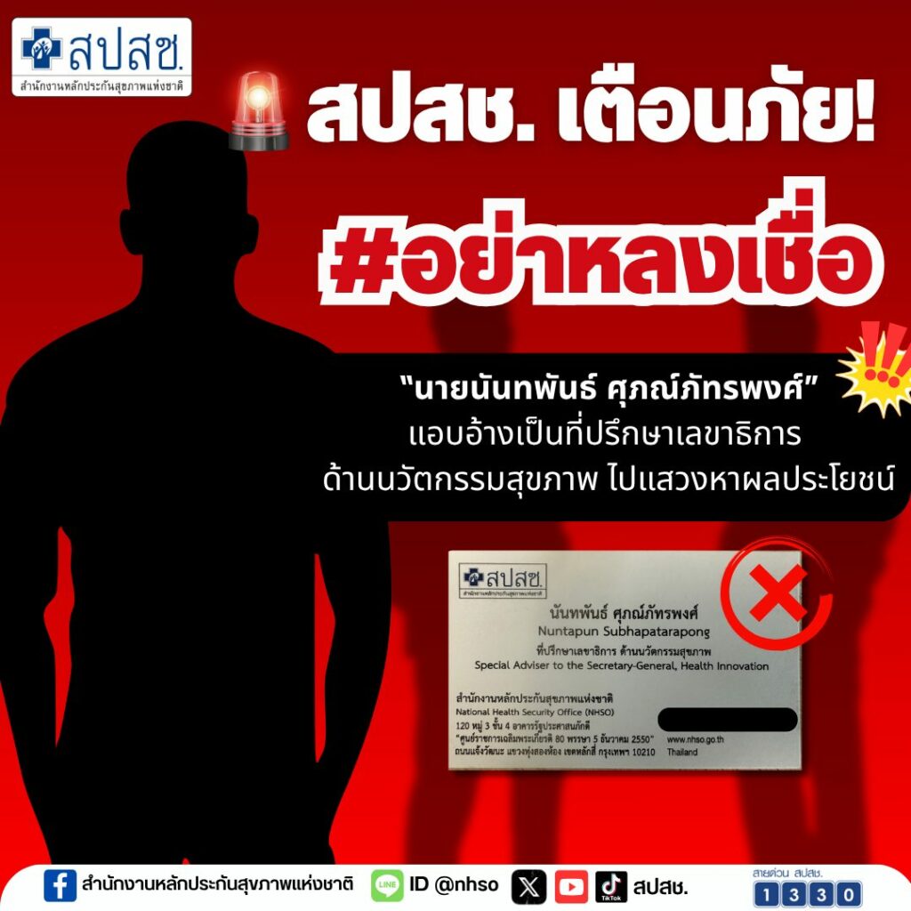 สปสช. เตือนประชาชนและหน่วยงานที่เกี่ยวข้องอย่าหลงเชื่อ มีผู้แอบอ้างเป็นที่ปรึกษาเลขาธิการฯ
