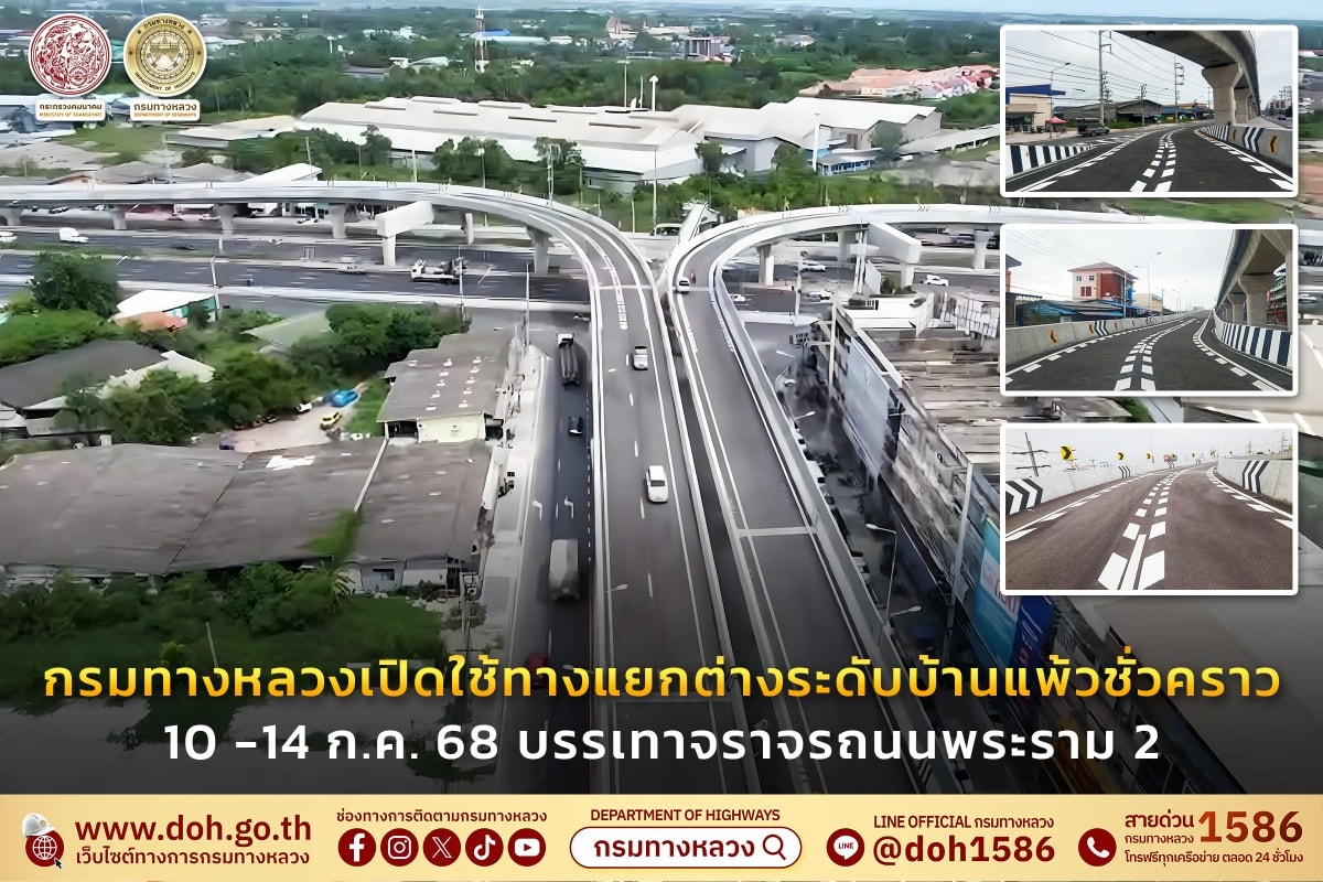 กรมทางหลวง เปิดใช้ทางแยกต่างระดับบ้านแพ้วชั่วคราว ตั้งแต่บัดนี้ – 14 ก.ค. 68