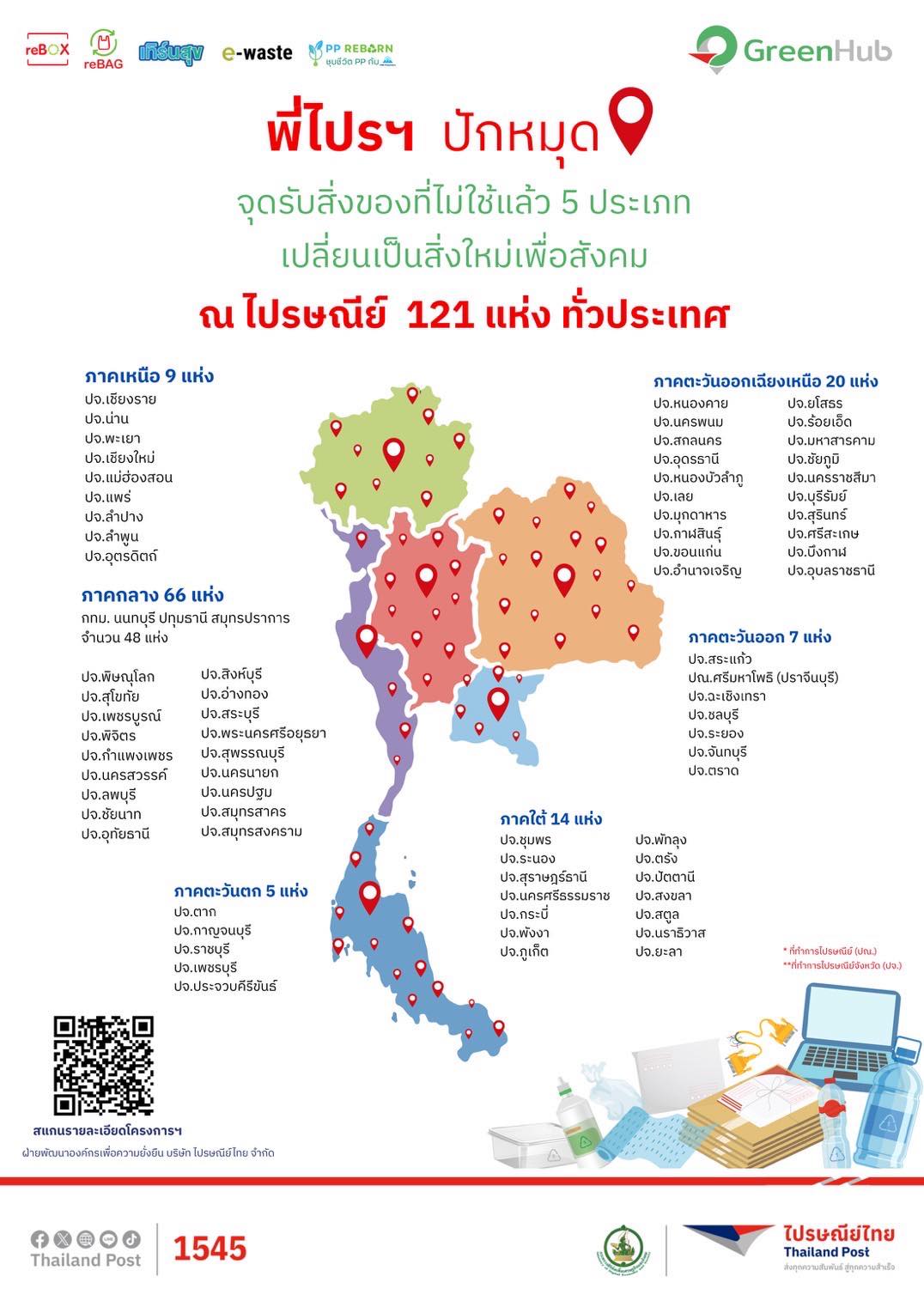 ไปรษณีย์ไทย ชวนร่วมโครงการ GreenHub ส่งต่อสิ่งของไม่ใช้แล้ว ณ ไปรษณีย์ 121 แห่งทั่วประเทศ
