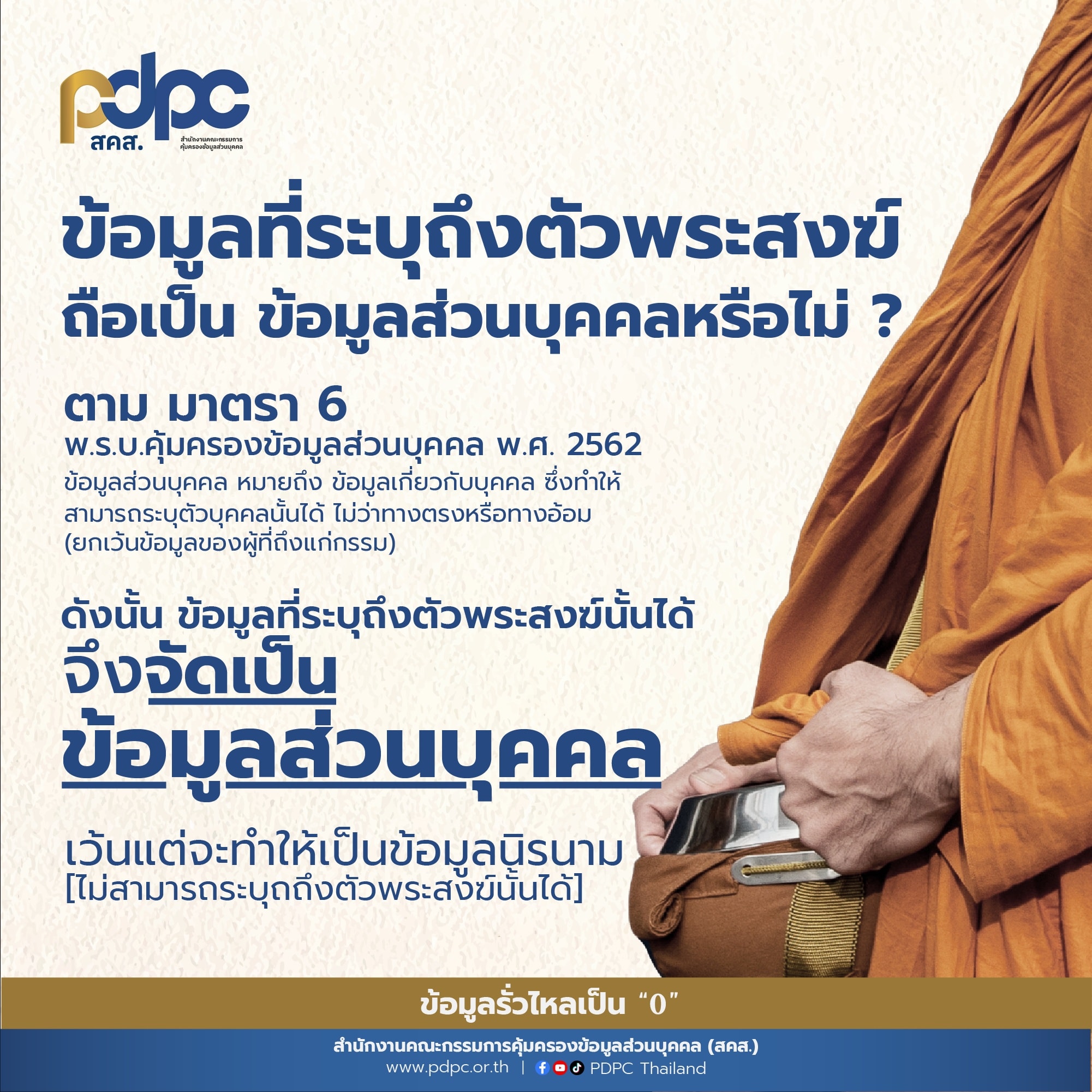 สคส. แนะนำข้อมูลที่ระบุถึงตัวพระสงฆ์ เป็นข้อมูลส่วนบุคคลหรือไม่