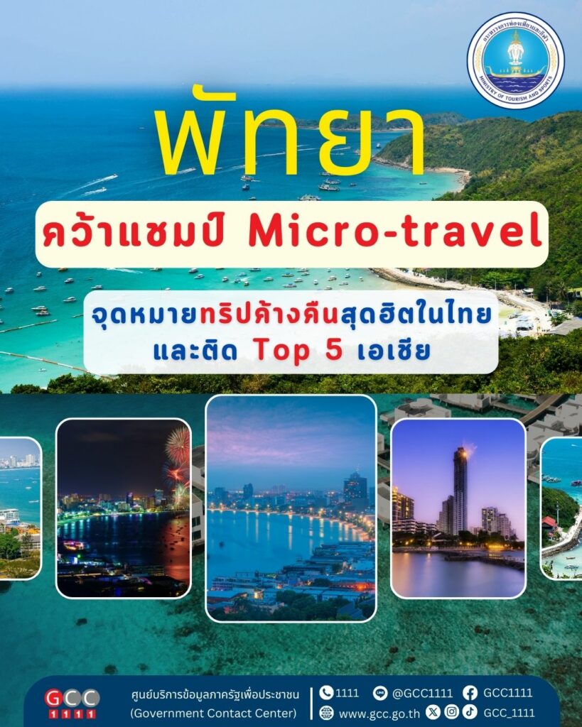 “พัทยา” คว้าแชมป์ “Micro-travel” จุดหมายทริปค้างคืนสุดฮิตในไทยและติด Top 5 เอเชีย จากแพลตฟอร์มอโกด้า (Agoda) ทั้งนี้ การที่พัทยาขึ้นแท่นจุดหมายปลายทางระดับเอเชีย เป็นผลจากความพร้อมของโครงสร้างพื้นฐานการท่องเที่ยว การบริการที่มีคุณภาพ และภาพลักษณ์อันโดดเด่นของไทยในเวทีสากล