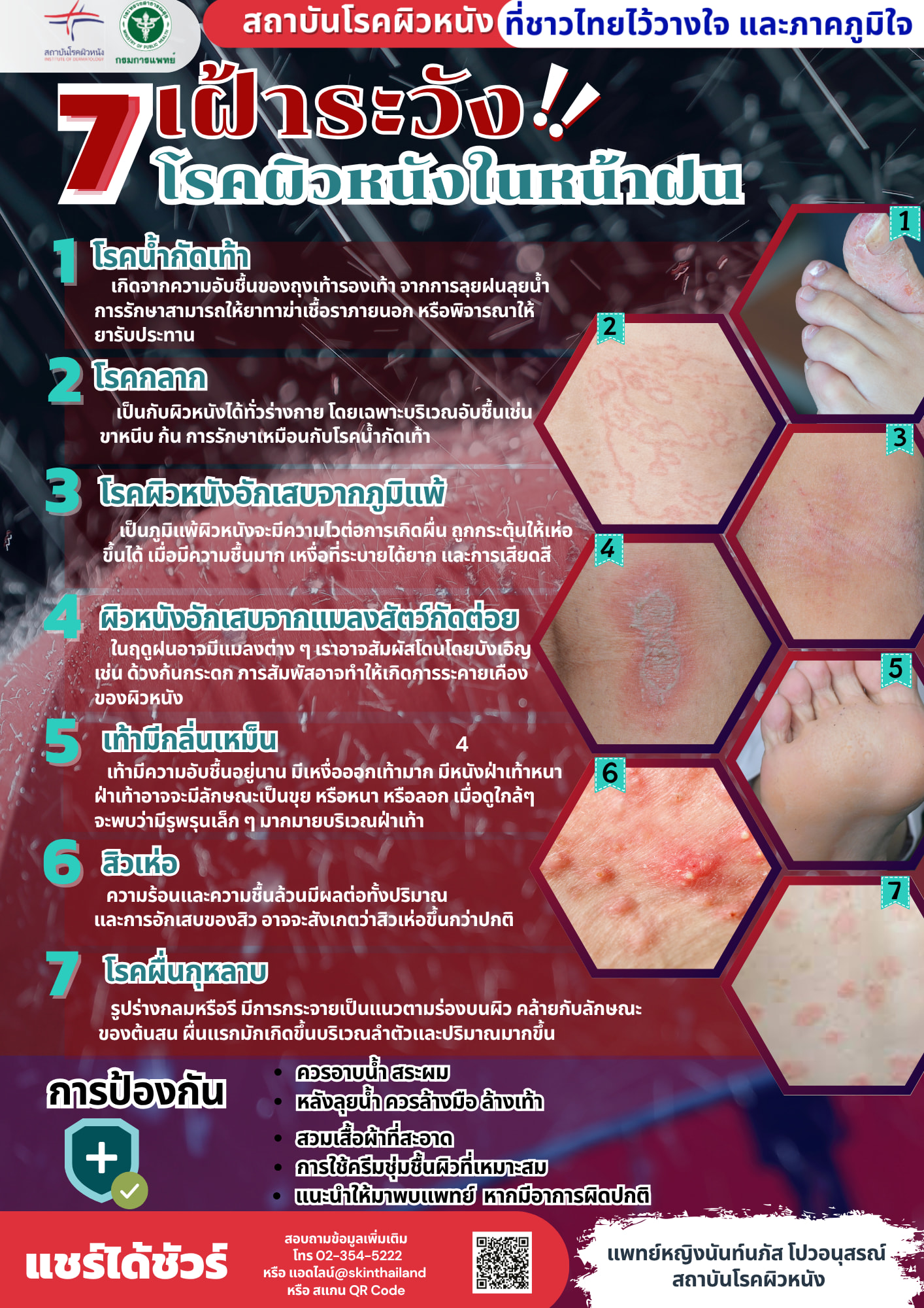 สถาบันโรคผิวหนัง เตือน เฝ้าระวัง 7 โรคผิวหนังในช่วงฤดูฝน