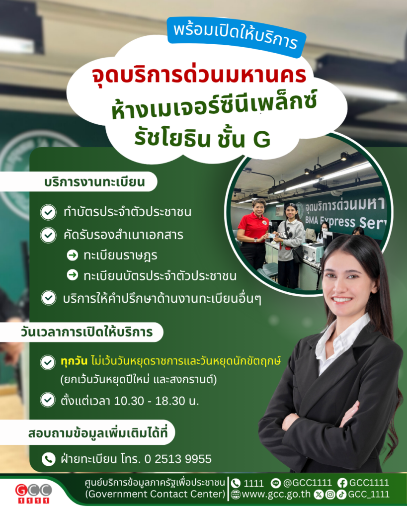 กรุงเทพมหานคร โดยสำนักงานเขตจตุจักร เปิดจุดบริการด่วนมหานคร (BMA Express Service) บริเวณชั้น G ห้างเมเจอร์ซีนีเพล็กซ์ รัชโยธิน