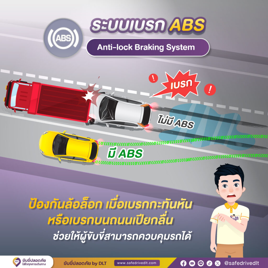 - ระบบเบรก ABS (Anti-lock Braking System) ป้องกันล้อล็อก เมื่อเบรกกะทันหัน หรือเบรกบนถนนเปียกลื่น ช่วยให้ผู้ขับขี่สามารถควบคุมรถได้ หากเกิดเหตุไม่คาดฝัน ต้องเบรกกะทันหัน