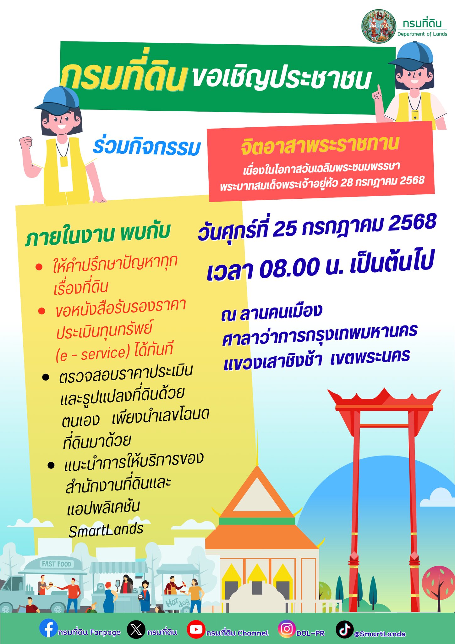 - มาร่วมกิจกรรมดี ๆ เพื่อสังคม พร้อมรับความรู้และบริการจากกรมที่ดินกันนะคะ