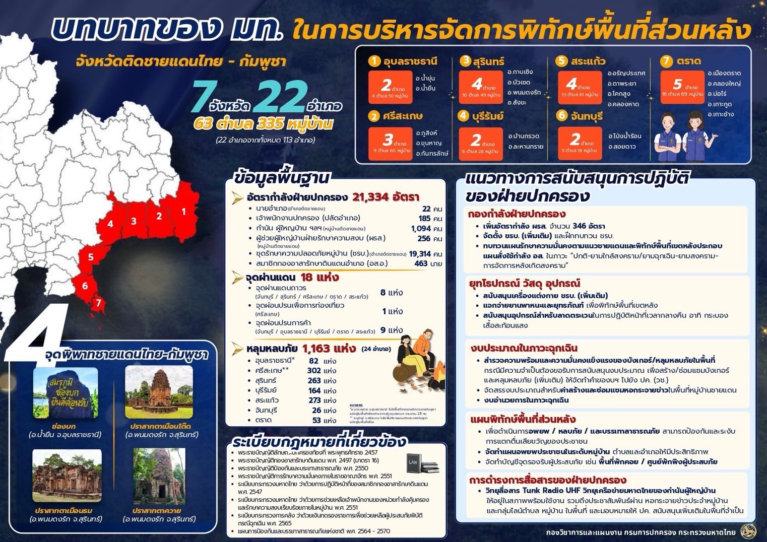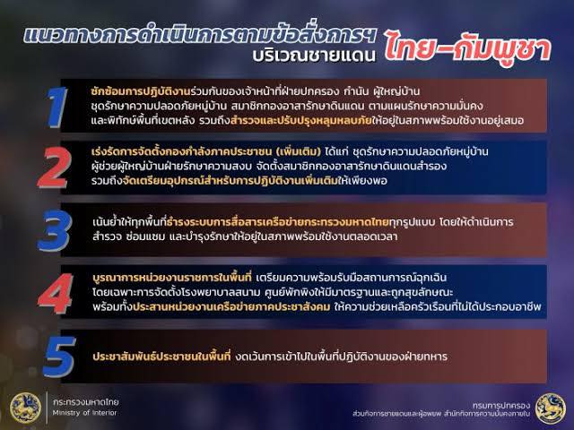 กรมการปกครอง แจ้งบทบาท ของกระทรวงมหาดไทย ในการบริหารจัดการพิทักษ์พื้นที่ส่วนหลังจังหวัดติดชายแดนไทย – กัมพูชา