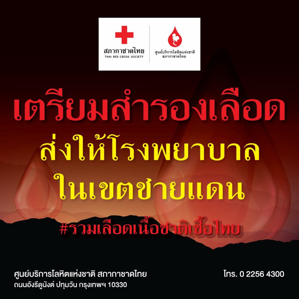 ด่วน จากสถานการณ์กรณีที่มีการใช้อาวุธบริเวณชายแดน จ.สุรินทร์ จ.ศรีสะเกษ และ จ.อุบลราชธานี ศูนย์บริการโลหิตแห่งชาติ และภาคบริการโลหิตแห่งชาติในพื้นที่ ได้มีการเตรียมโลหิตสำรองไว้สนับสนุนโรงพยาบาลและหน่วยงานสาธารณสุขในเขตพื้นที่ โดยช่วงเช้าที่ผ่านมา ได้มีการส่งโลหิตไปยัง รพ. ในพื้นที่ชายแดน จำนวน 200 ถุง และยังคงต้องการโลหิตบริจาคอย่างต่อเนื่อง ทั้งนี้ ขอเชิญชวนผู้ที่มีความพร้อม ร่วมสำรองโลหิตคงคลัง เตรียมพร้อมช่วยเหลือผู้ป่วย