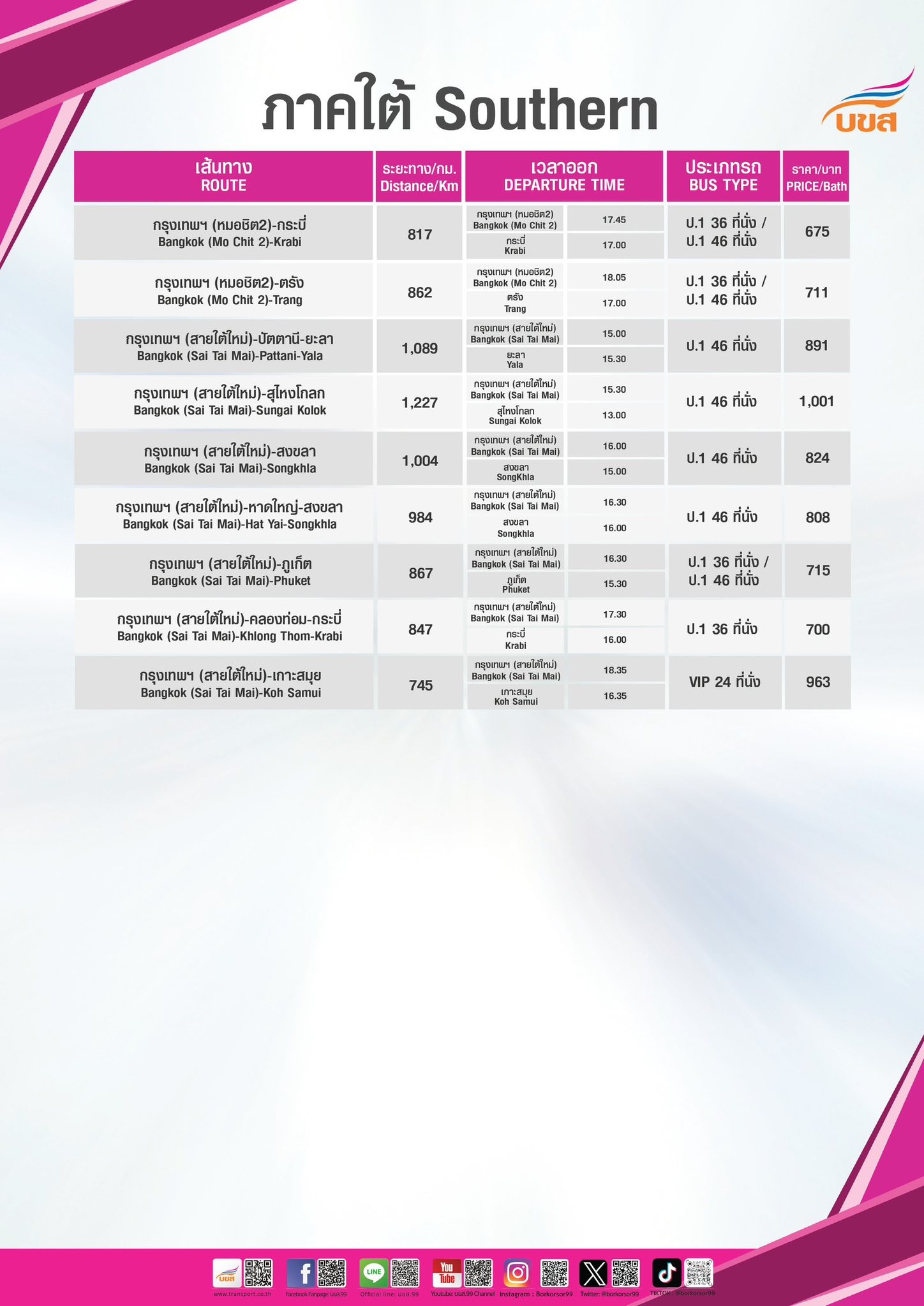 • กรุงเทพฯ (หมอชิต 2) – ปัตตานี ระยะทาง 1,061 กม.
