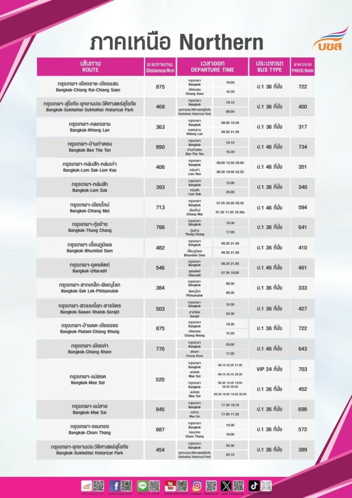 นายอรรถวิท รักจำรูญ กรรมการผู้จัดการใหญ่ บริษัท ขนส่ง จำกัด (บขส.) เปิดเผยว่า ตั้งแต่วันที่ 1 สิงหาคม 2568 เป็นต้นไป บขส. จะปรับการเดินรถโดยสารเส้นทางภายในประเทศใหม่ เช่น ปรับจุดจอดระหว่างทาง ตารางเวลาเดินรถ เที่ยววิ่ง เป็นต้น ให้สอดคล้องกับความต้องการของผู้โดยสาร และรองรับการเดินทางของประชาชน ทำให้เกิดความสะดวก รวดเร็ว และปลอดภัย ตามนโยบายกระทรวงคมนาคม ซึ่งจะทำให้ บขส. มีเส้นทางเดินรถที่เปิดให้บริการ รวมจำนวน 62 เส้นทาง 175 เที่ยววิ่งต่อวัน ดังนี้