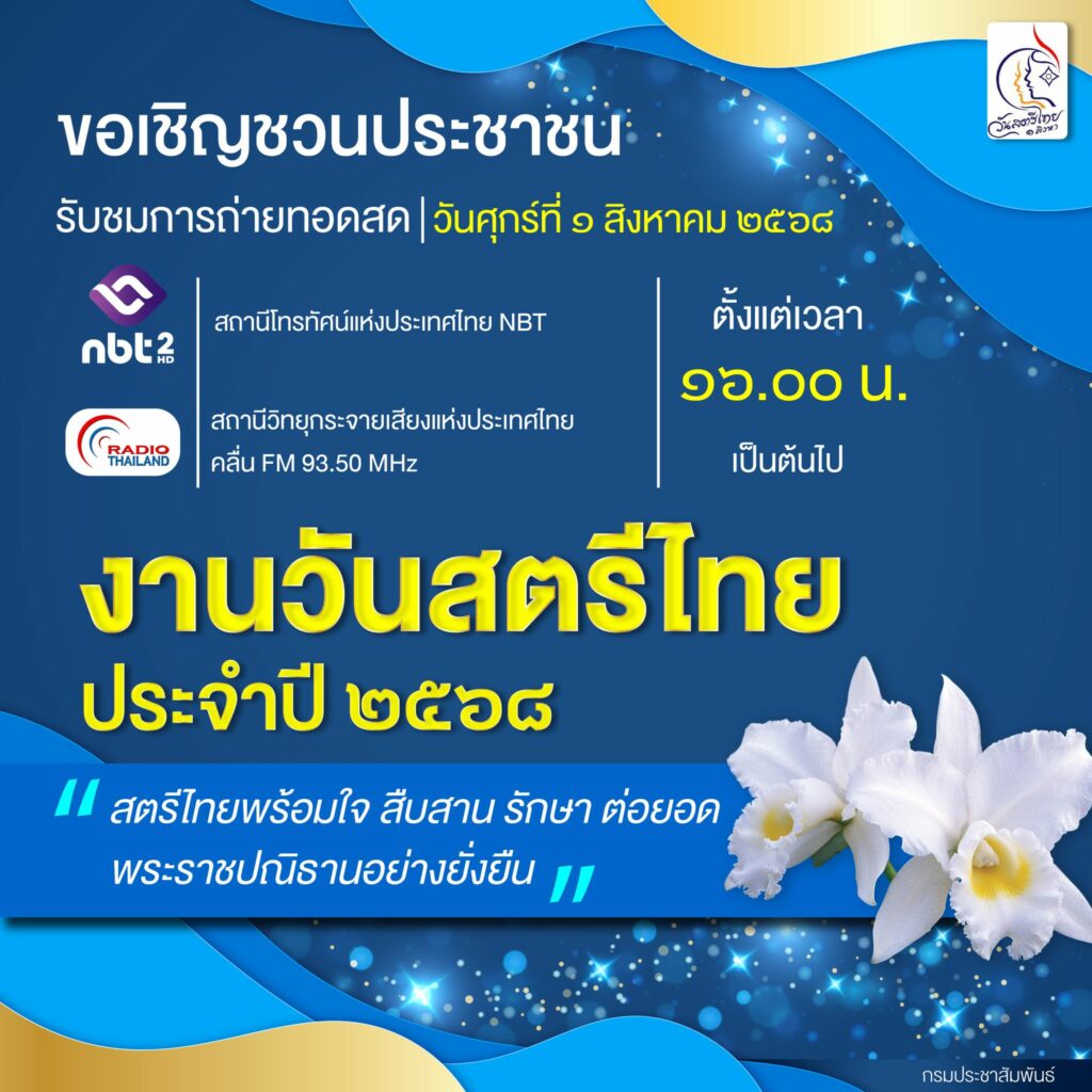 กรมประชาสัมพันธ์ ขอเชิญชวนประชาชนรับชมการถ่ายทอดสด งานวันสตรีไทย ประจำปี 2568
