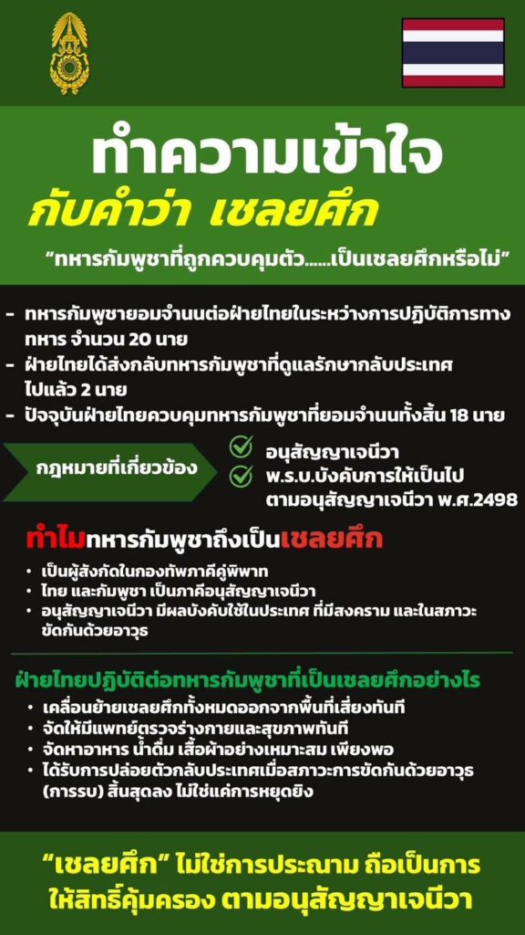 ” ทหารกัมพูชาที่ถูกควบคุมตัว เป็นเชลยศึกหรือไม่ “
