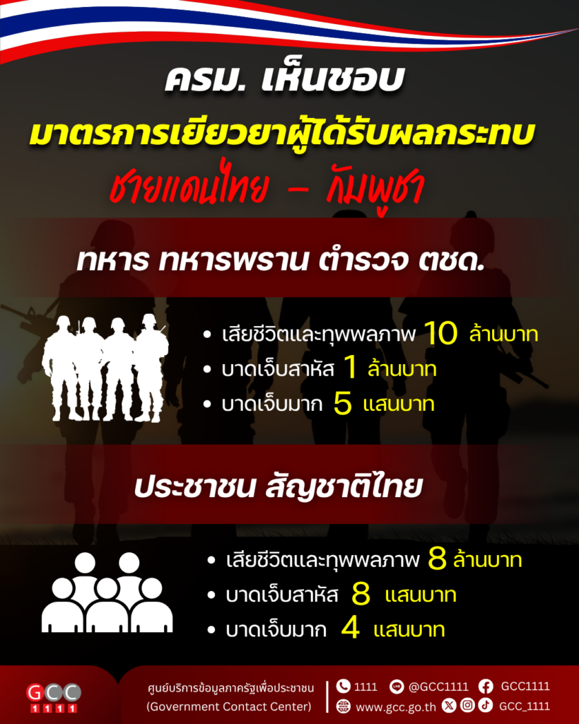 ครม. เห็นชอบจ่ายเยียวยาผู้ได้รับผลกระทบจากชายแดนไทย – กัมพูชา เจ้าหน้าที่รัฐ สูงสุด 10 ล้าน