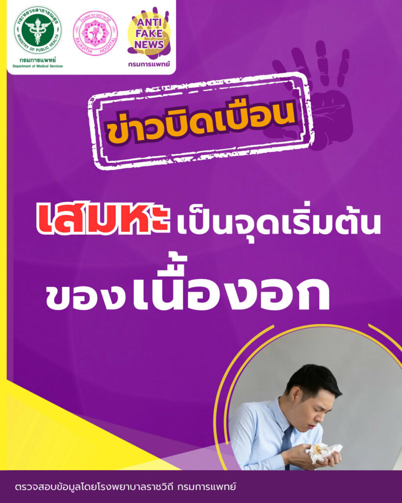 กรมการแพทย์ ยืนยัน “เสมหะเป็นจุดเริ่มต้นของเนื้องอก” เป็นข้อมูลบิดเบือน