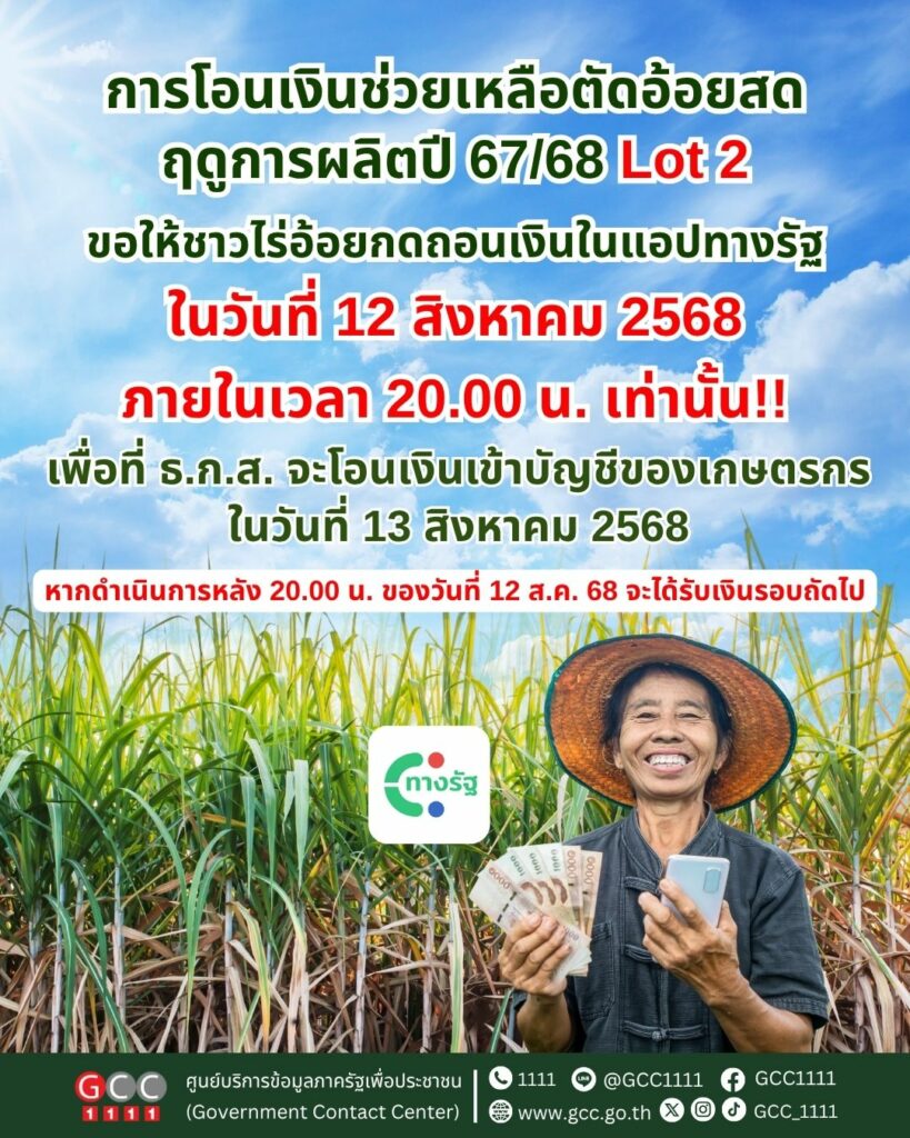 สอน. แจ้งชาวไร่อ้อยกดยืนยันสิทธิรับเงินช่วยเหลือตัดอ้อยสด รอบ 2 ภายในวันที่ 12 ส.ค. 68 ข่าวสารกิจกรรม สอน. แจ้งชาวไร่อ้อยกดยืนยันสิทธิรับเงินช่วยเหลือตัดอ้อยสด รอบ 2 ภายในวันที่ 12 ส.ค. 68 สำนักงานคณะกรรมการอ้อยและน้ำตาลทราย ประกาศแจ้งชาวไร่อ้อยให้ดำเนินการกดถอนเงินผ่านแอป “ทางรัฐ” ภายในวันที่ 12 สิงหาคม 2568 ไม่เกินเวลา 20.00 น. เพื่อที่ ธ.ก.ส. จะสามารถโอนเงินช่วยเหลือตัดอ้อยสด ฤดูการผลิตปี 2567/68 (รอบที่ 2) เข้าบัญชีของเกษตรกรได้ในวันที่ 13 สิงหาคม 2568 หากดำเนินการหลังเวลา 20.00 น. ของวันที่ 12 สิงหาคม 2568 ท่านจะได้รับเงินในรอบถัดไป ที่มา : Facebook สำนักงานคณะกรรมการอ้อยและน้ำตาลทราย สอน. Post Views: 66 FacebookFacebookXTwitterLINELine