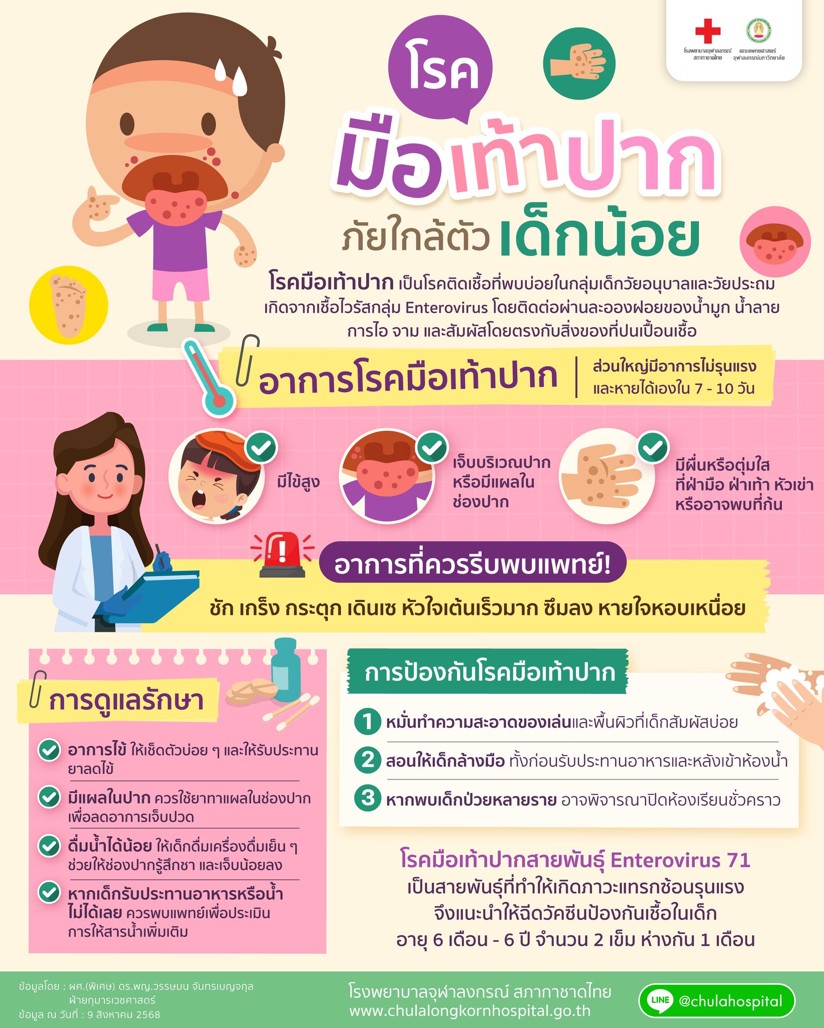 โรงพยาบาลจุฬาลงกรณ์ สภากาชาดไทย แจ้งเตือนโรคมือเท้าปาก ภัยใกล้ตัวเด็กน้อย