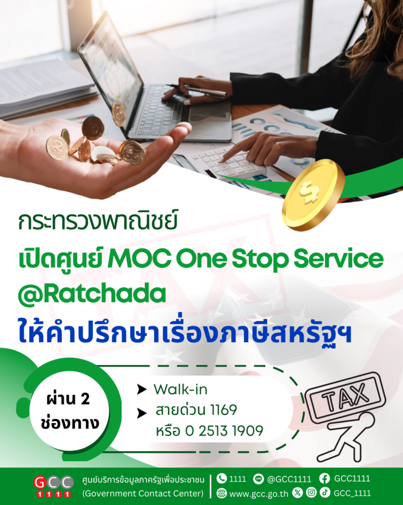 กระทรวงพาณิชย์ เปิดศูนย์ MOC One Stop Service @Ratchada ให้คำปรึกษาภาษีสหรัฐฯ