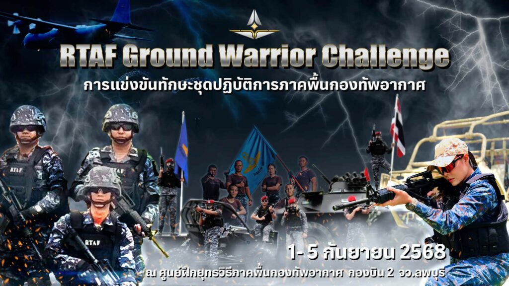 กองทัพอากาศ จัดการแข่งขันทักษะ #ชุดปฏิบัติการภาคพื้น กองทัพอากาศ RTAF Ground Warrior Challenge 2025” และ เป็น ครั้งแรกที่ #นักรบทัพฟ้าหญิง เข้าร่วมศึก“ ระหว่างวันที่ 1–5 กันยายน 2568 ณ ศูนย์ฝึกยุทธวิธีภาคพื้นกองทัพอากาศ กองบิน 2 จังหวัดลพบุรี