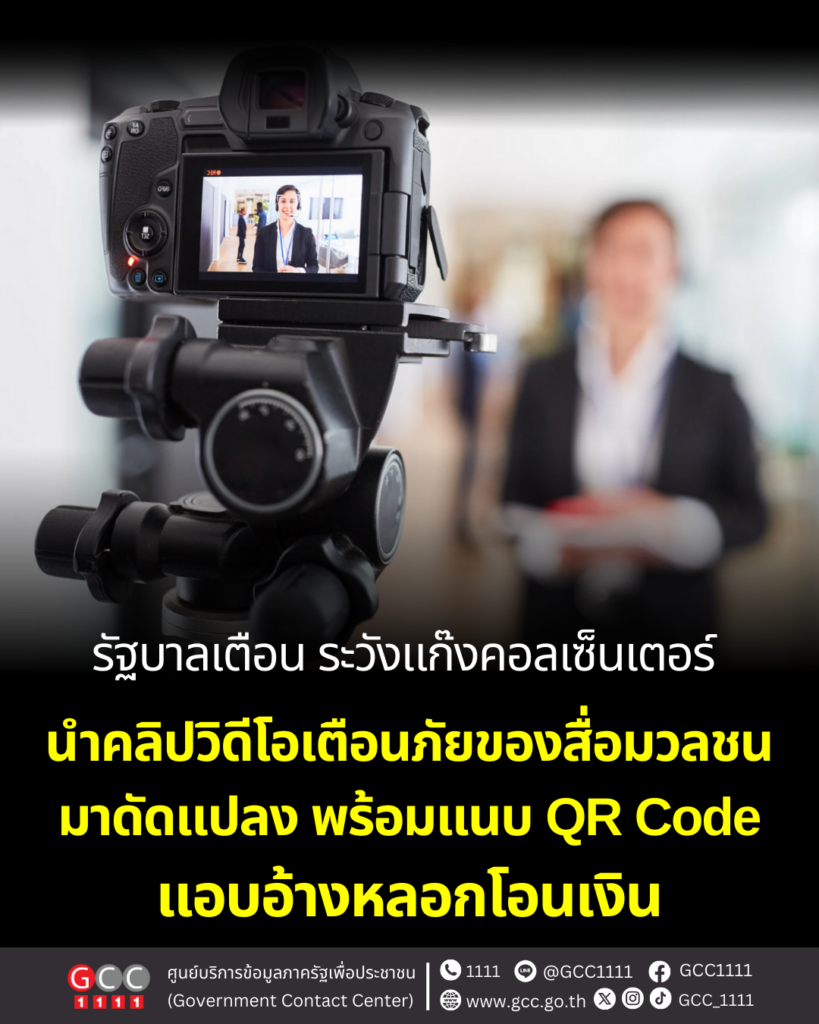 รัฐบาลเตือนภัย กลโกงใหม่คอลเซ็นเตอร์ ดัดแปลงคลิปสื่อมวลชนแนบ QR Code แอบอ้างหลอกโอนเงิน