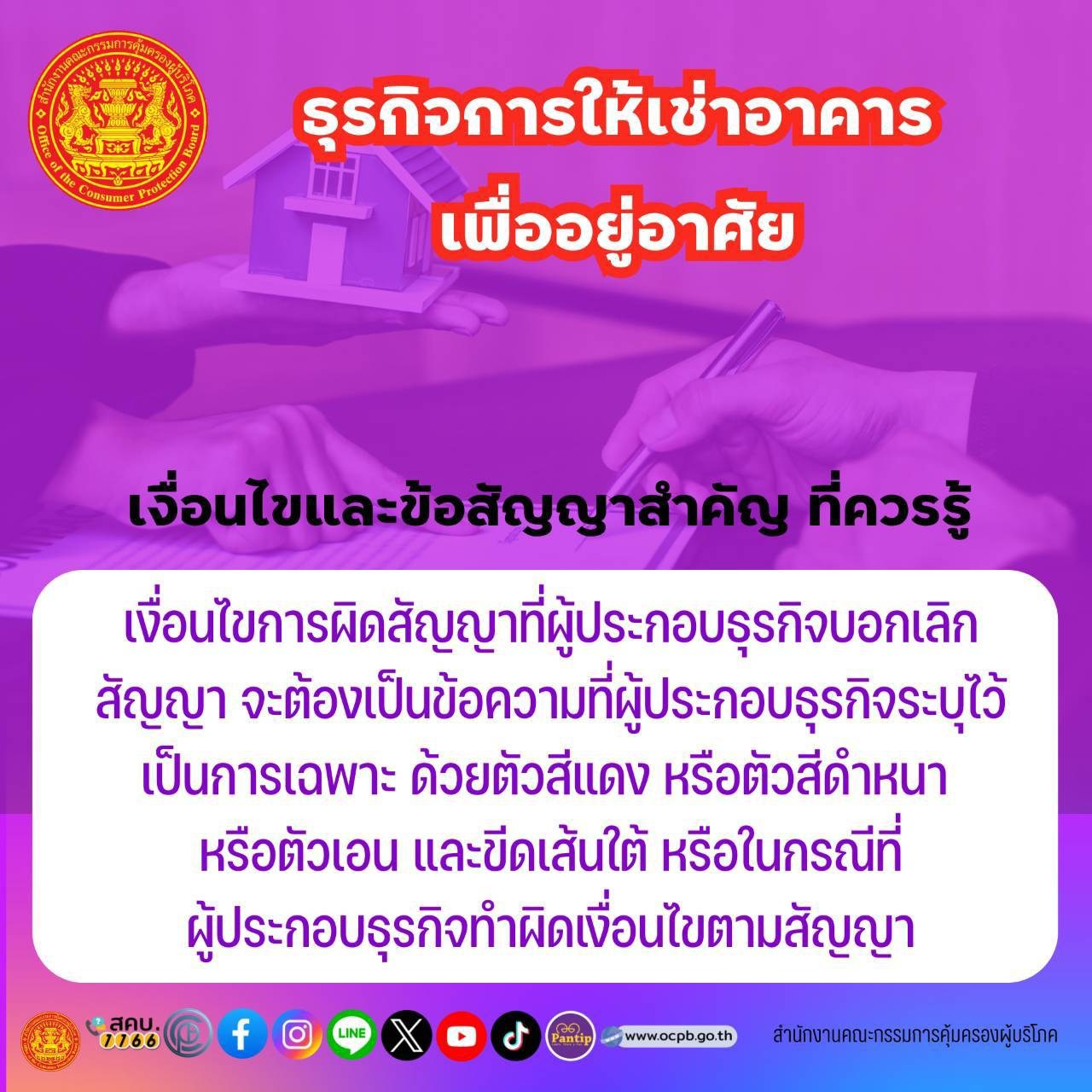 สคบ. แนะนำธุรกิจการให้เช่าอาคาร เพื่ออยู่อาศัยเงื่อนไขและข้อสัญญาสำคัญ ที่ควรรู้