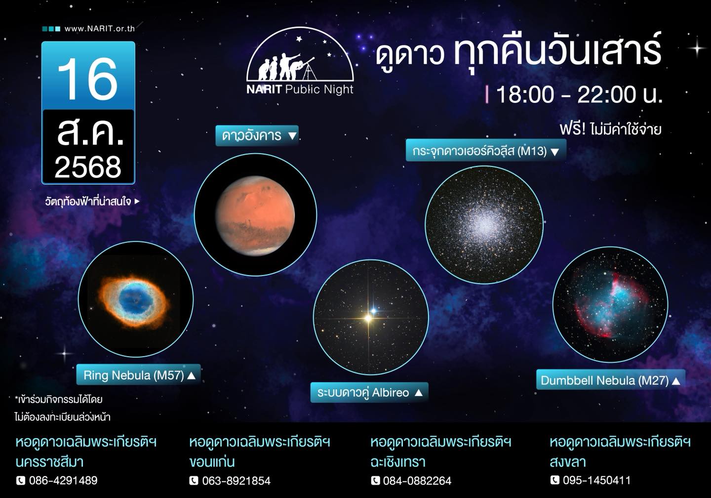 สดร. ชวนร่วมกิจกรรม NARIT Public Night วันที่ 16 สิงหาคม 2568