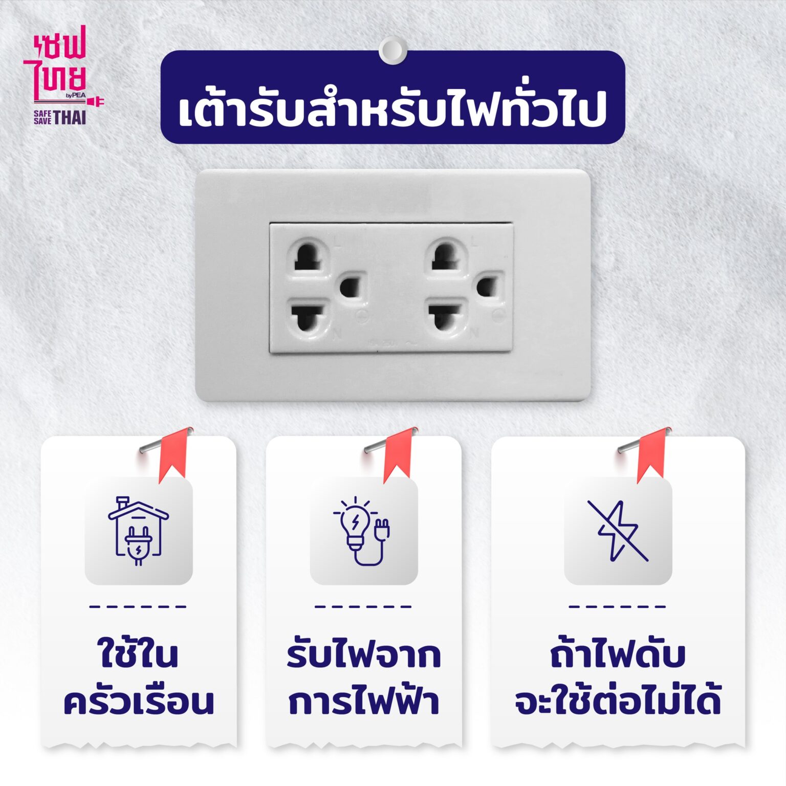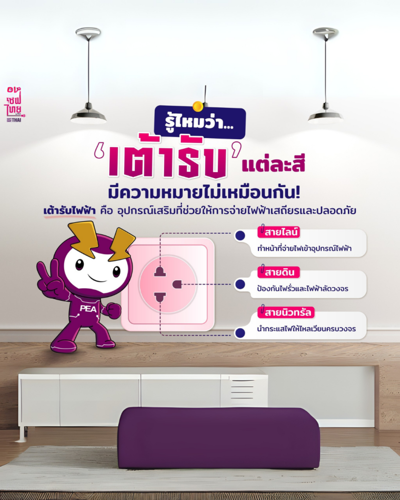 การไฟฟ้าส่วนภูมิภาค แนะนำความรู้ เต้ารับไฟฟ้าไม่ได้มีแค่สีขาว
