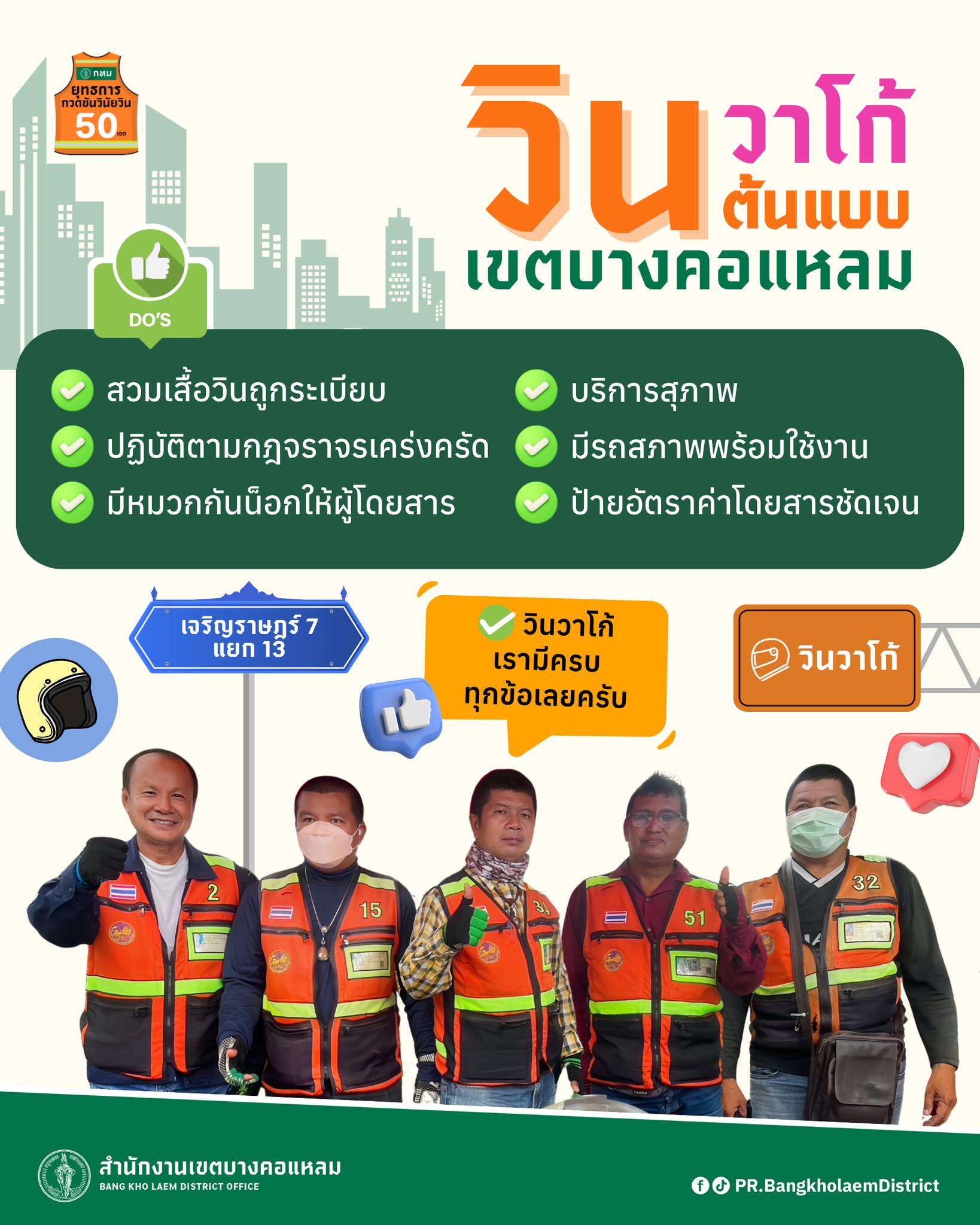 กรุงเทพมหานคร แนะนำนั่งวินทั้งที วินวาโก้จัดให้แบบครบสูตร วินต้นแบบ เขตบางคอแหลม ถูกระเบียบ ปลอดภัย สุภาพ ราคาชัด ทั้งผู้โดยสารและวินมอเตอร์ไซค์ หากพบพี่วินฝ่าฝืน/ทำผิดกฎหมาย ไม่ว่าจะเป็นวินใดก็ตาม สามารถแจ้งผ่าน Traffy Fondue โปรดระบุชื่อวิน เลขหลังเสื้อ หรือทะเบียนรถ ในการแจ้ง