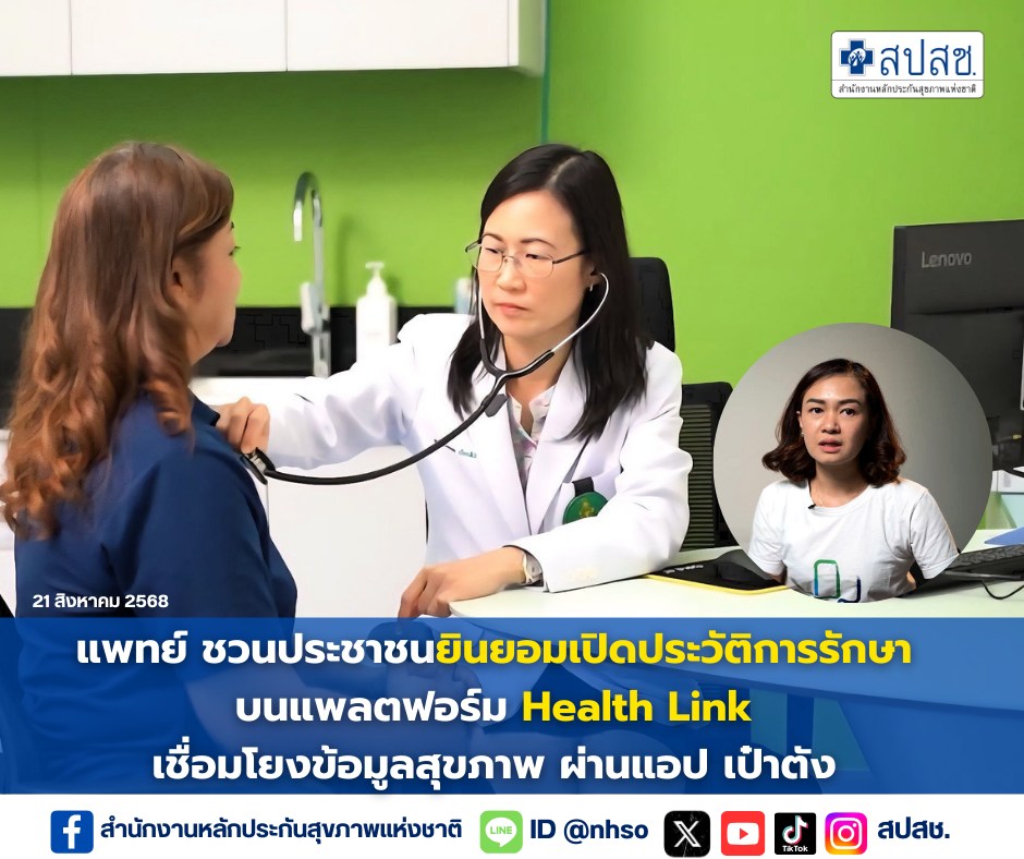 แพทย์ ชวนประชาชนยินยอมเปิดประวัตการรักษา บนแพลตฟอร์ “Health Link” เชื่อมโยงข้อมูลสุขภาพ ทำให้แพทย์เข้าถึงประวัติคนไข้รวดเร็ว ครบถ้วน เพิ่มประสิทธิภาพการรักษา ลดการตรวจซ้ำซ้อน แถมเพิ่มความสะดวกให้คนไข้ ไม่ต้องกลับไปขอประวัติการรักษาจากสถานพยาบาลเดิม ประหยัดเวลาและค่ารักษาด้าน Health Link ชวนประชาชน ยินยอมเปิดเผยประวันการรักษาแพลตฟอร์ม Health Link ผ่านแอปเป๋าตัง