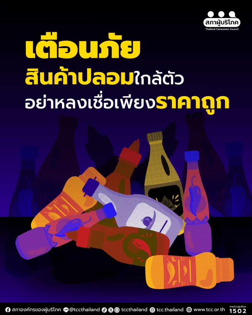 สภาผู้บริโภค เตือนภัย “สินค้าปลอม” ที่พบวางขายทั้งตลาดนัดและบนแพลตฟอร์มออนไลน์ ตั้งแต่เครื่องปรุงรสอย่างซีอิ๊ว น้ำปลา กาแฟ ไปจนถึงสินค้าฟุ่มเฟือย เช่น กระเป๋า รองเท้า เครื่องสำอาง และอุปกรณ์อิเล็กทรอนิกส์ ราคาที่ดูดีเกินจริงอาจแฝงด้วยอันตรายต่อสุขภาพ และทำให้ผู้บริโภคเสียสิทธิ์โดยไม่รู้ตัว ก่อนตัดสินใจซื้อ อย่าลืมตรวจสอบมาตรฐานสินค้า เช่น เลข อย. หรือความน่าเชื่อถือของร้านค้า ป้องกันการตกเป็นเหยื่อของมิจฉาชีพออนไลน์