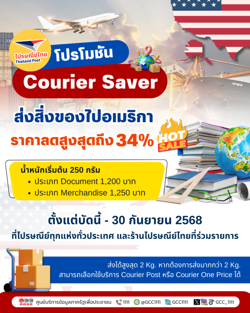 • บริษัท ไปรษณีย์ไทย จำกัด จัดโปรโมชัน Courier Saver ส่งสิ่งของไปอเมริกา